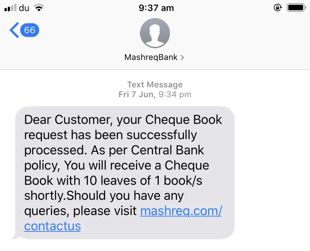 Similar message has been received earlier as well. Currently I am not a Mashreq bank customer. Please clear my mobile number from the transactions/accounts, if entered wrongly, and acknowledge.