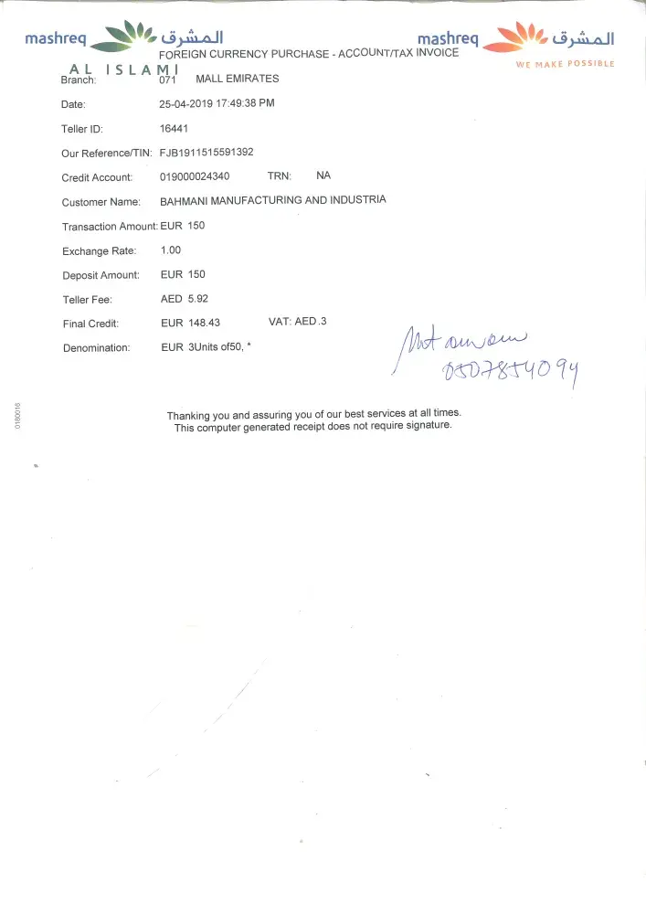 Last Thursday I want to deposit 150 euro in our Euro Account - Bahmani Manufacturing and Industrial Technology Account No. [protected], I explained to teller that I will pay in dirhams but the credit should be in our Euro account. This transaction was already confirmed with our RM - Mr. Tareq [protected] - and our RM confirmed yes - it's possible to deposit in Euro by paying in dirhams. Furthermore - we are always doing this kind of transaction in our CBI bank and ADIB bank - unfortunately, the teller is little rude - and he said to go to the exchange and change the money then he will accept the deposit. So I did change the bills in euro inside the mall then I returned back to the teller. In front of me, there is one customer whom the teller is attending. While waiting for my turn - one Arabic speaking lady came with another Mashreq bank guy. Suddenly when my turn came, the teller said - sorry there is customer - I was shocked - I was thinking then - when I was clearly in front of the queue and then suddenly the teller - there is customer - I want to ask myself - do I look like that I am a beggar and not a customer. This was clearly discrimination in my eyes. I keep calm and I beg the Arabic lady to allow me to go first because I was really in a hurry, our Mashreq RM is waiting for the deposit slip, alhamdullilah, the Arabic lady was so nice to grant my request. But my sufferings did not end there - I was trying to get my Emirates ID for verification- and because I was in a hurry I cannot find my Emirates ID, the teller said to move aside and check first the Emirates ID, then I left the counter and came back again in the queue and waited for my turn, finally my turn came again, but then simple transaction of 150 euro cash deposit - it took like forever - the teller while doing my transaction- which he can clearly see that I'm on the verge of crying - decided to really make my life difficult - the teller's mobile phone rings - and he answered the call very leisurely - same like a guy sitting in the park - doing chit chat on the phone. Still I keep my patience and waited for him to do his business on the phone. I waited and waited and finally when the deposit slip is ready - another guy came - I think its something like Transguard - I forgot the name of the company - the teller who is happy making my life miserable - took the money from the new guy and count the money from the machine. I was really very surprised why the teller is tormenting my life - instead of finishing copying my Emirates ID - he decided to do another task - I'm not really sure - If this is happening to your branch everyday or its just me - or if I did something bad to your teller - which I'm not sure I did - you can even check all the CCTV and all voice recordings - if I did something bad to your teller. I was really upset on that day, I was dealing with so many banks and that was the first time that I encountered a very very bad behavior of teller. I wish that Mr.Aftab will realize how badly he treated me on that day.