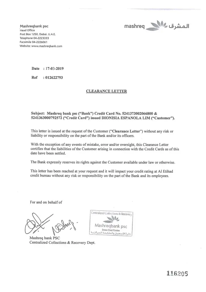 yet they have not settled my card and loan even though money is available in my account since April 18th 2019. Everyday they will charge interest until card and loan is closed. I don't have any interest to contact them again. Only thing I can do is I will never use the word Mashreq bank or its products or services in future. I understand we must always go with a bank that respect customers and its concerns. Otherwise we should end up with loss and frustration.