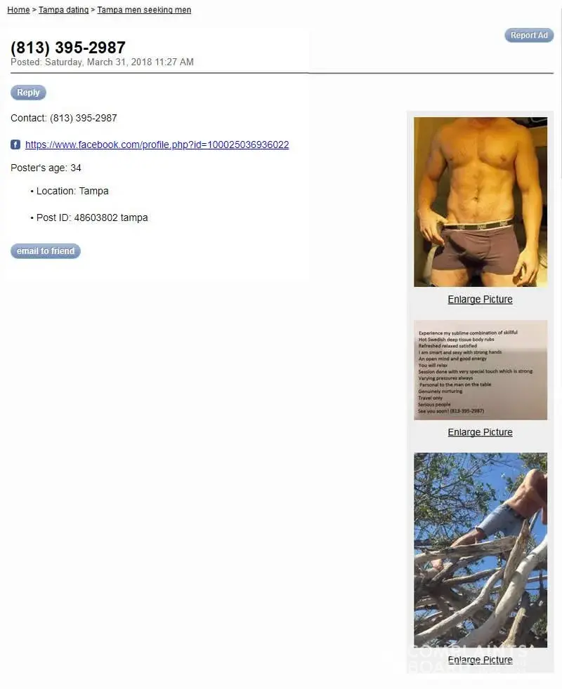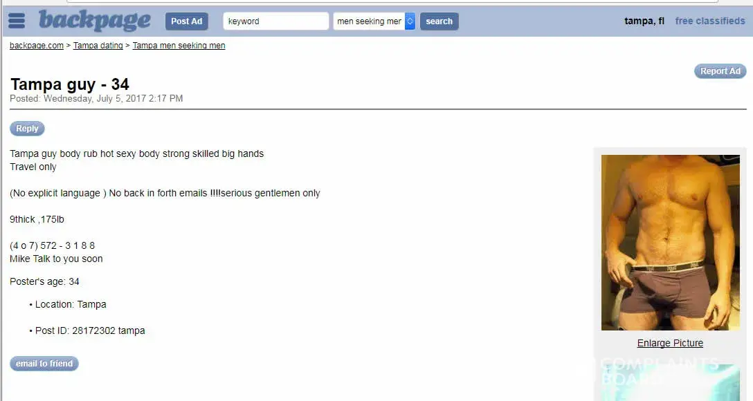 Here are those 3 Backpage pictures he posted and the ad description of his services: