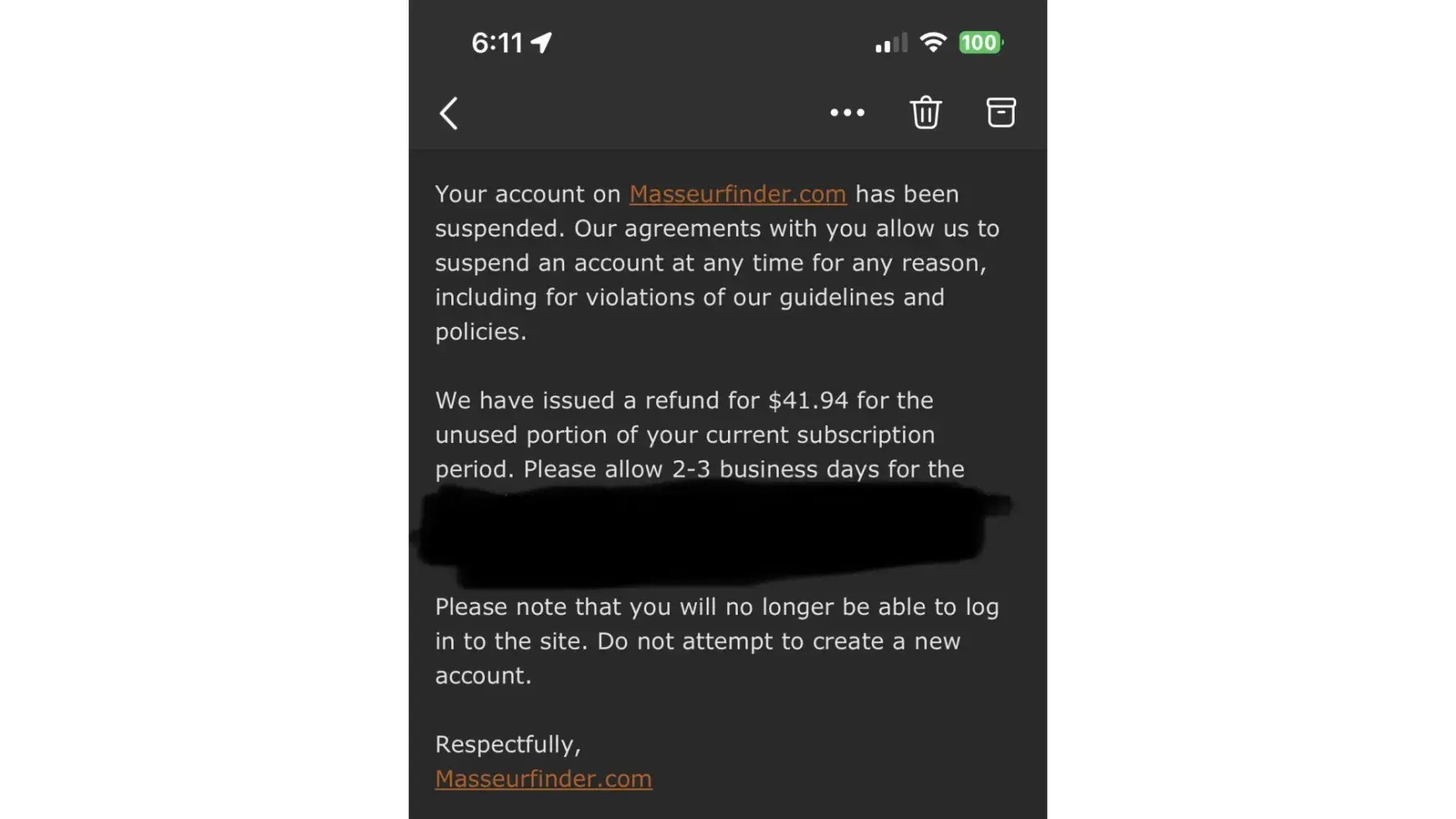 Masseurfinder, why do you place the same canned response in every complaint? Do you actually stop and look into the situation?