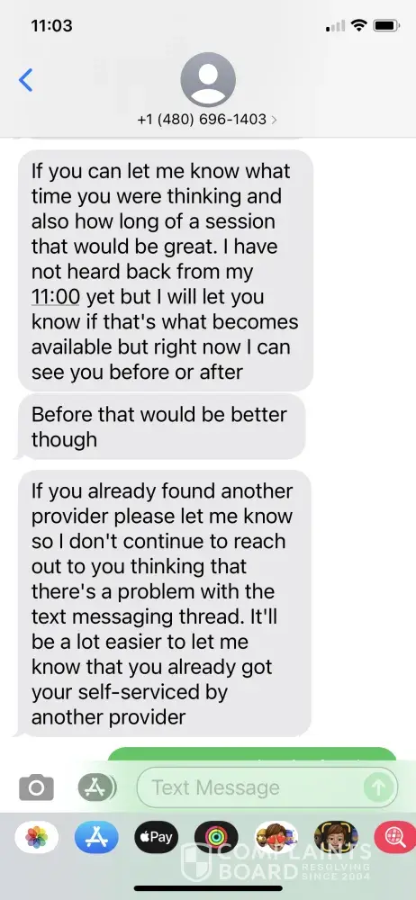 This Massage Therapist has some MAJOR issues. See my text thread from him. He needs to be reported to the board of massage.