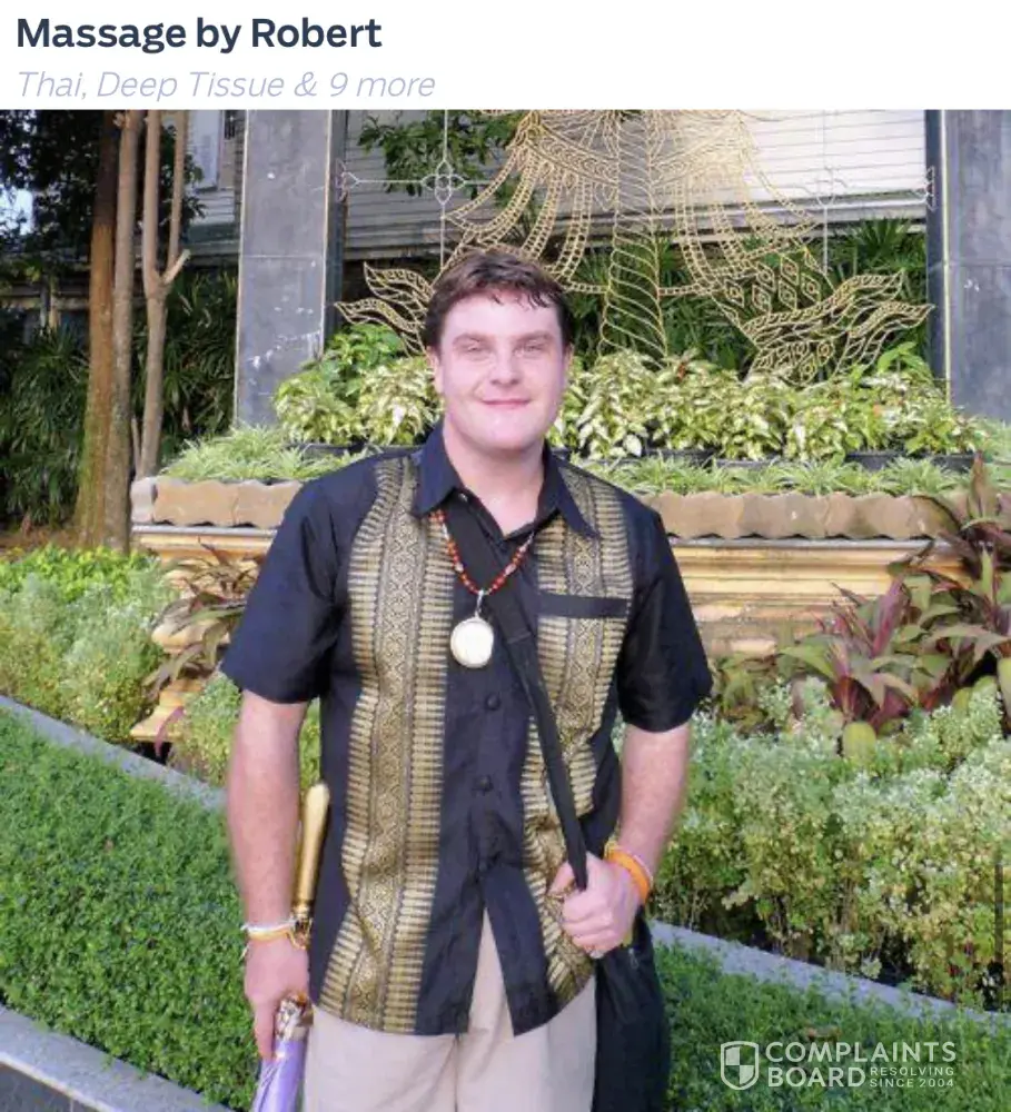 I had the grossest massage of my life by a guy named robert. Maybe it was sexual assault? He said he didn't have a table and that it was fine to use my bed and when I laid down he took his pants off and laid next to me!? He started rubbing me like some kind of prostitute. I was so horrified I just lay there. He kept stroking my ear and telling me he was a master of the sensual arts. It was so gross. I didn't know what to do and so I jist went with it as I could tell he had bot intension of actually massaging me and was asking me weird questions. We ended up hooking up and I feel totally used and rotten inside. He was not a masseuse. I had a trauma response. I chose a gay friendly massage thinking they wouldn't judge me and WTF!?!? This site should be banned.