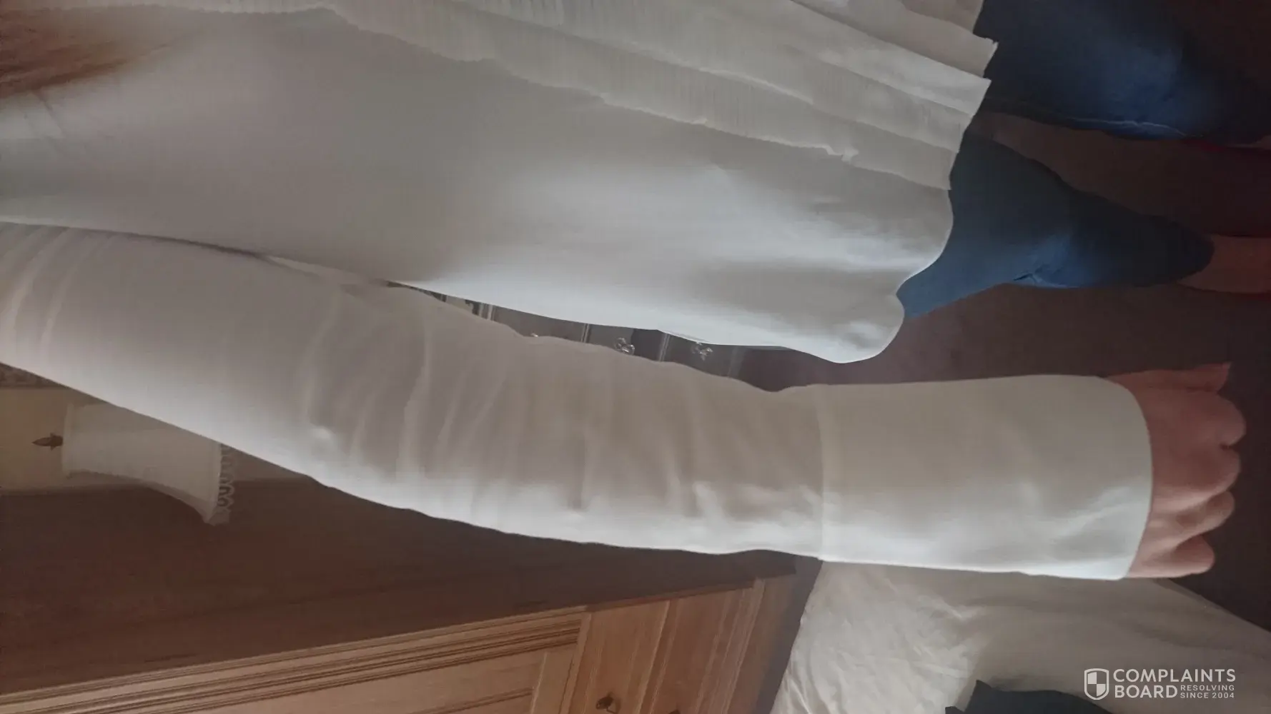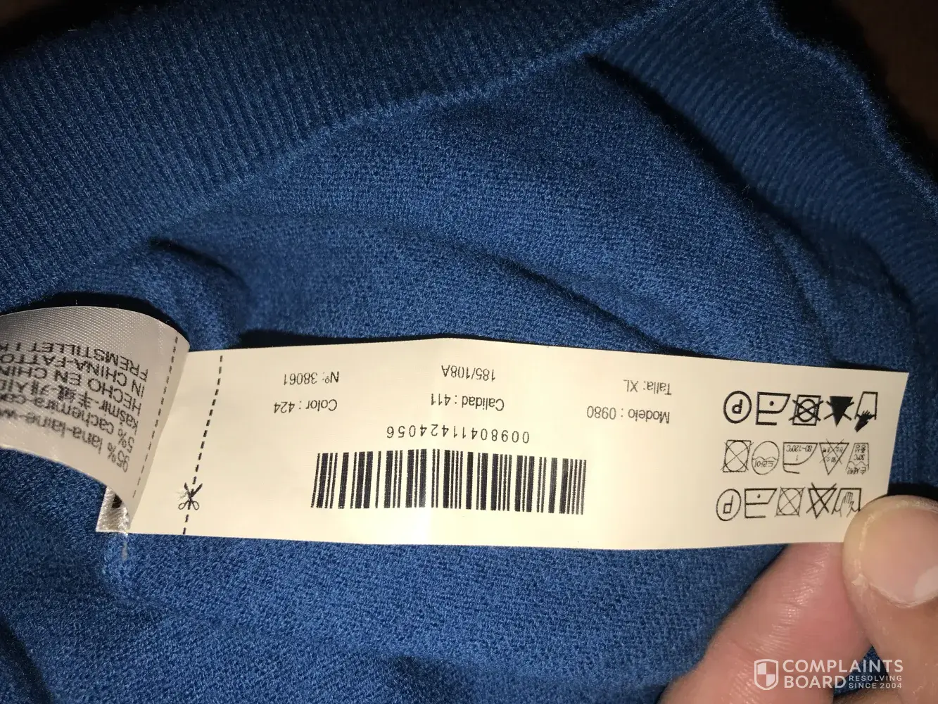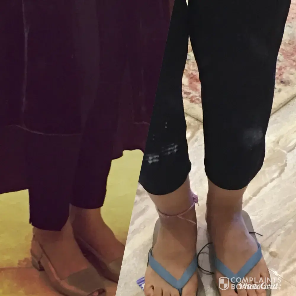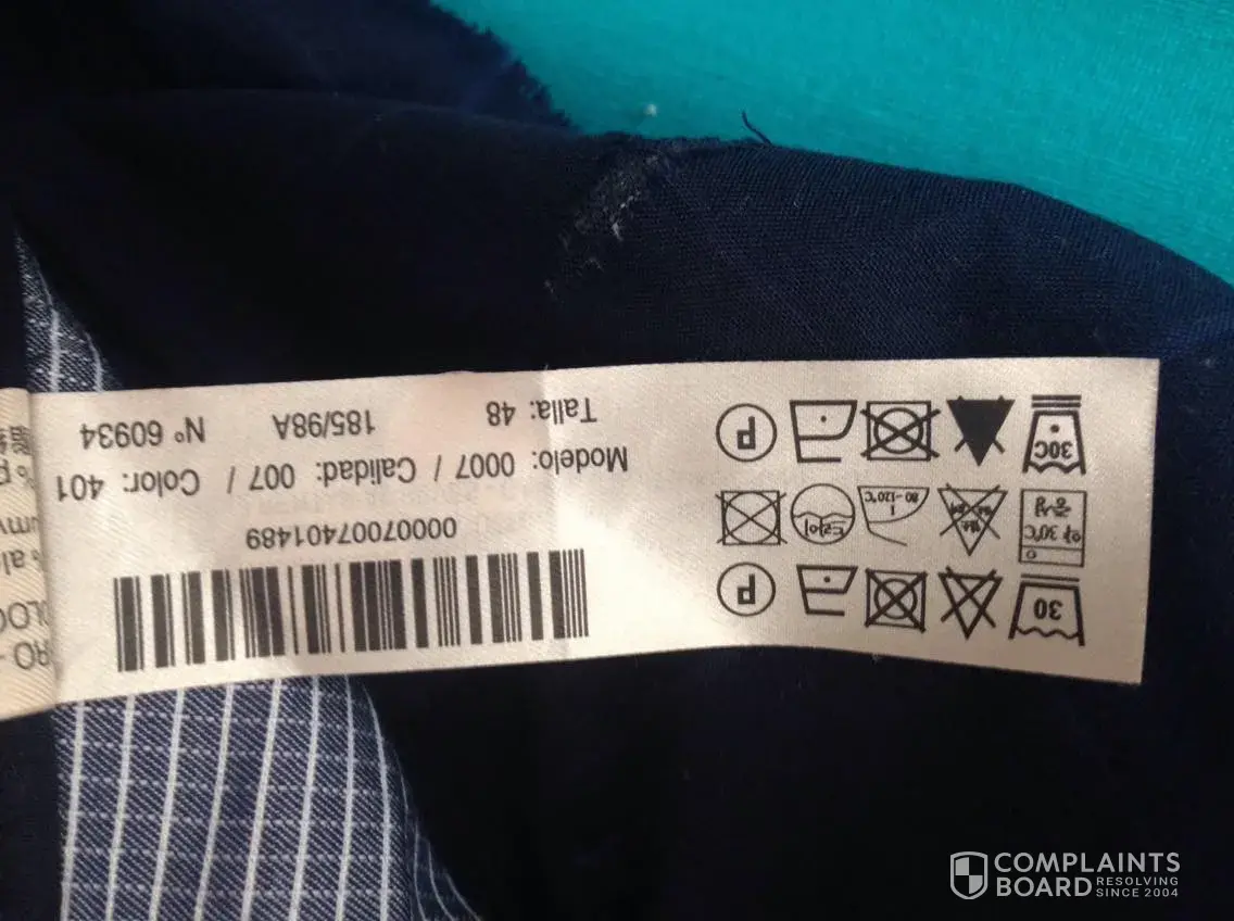 The trousers complaint is related to the length after wash. I followed the wash instructions on the item and i faced this problem. I have purchased the trouser back in november 2017 and i wore it only 4 times and washed it once .