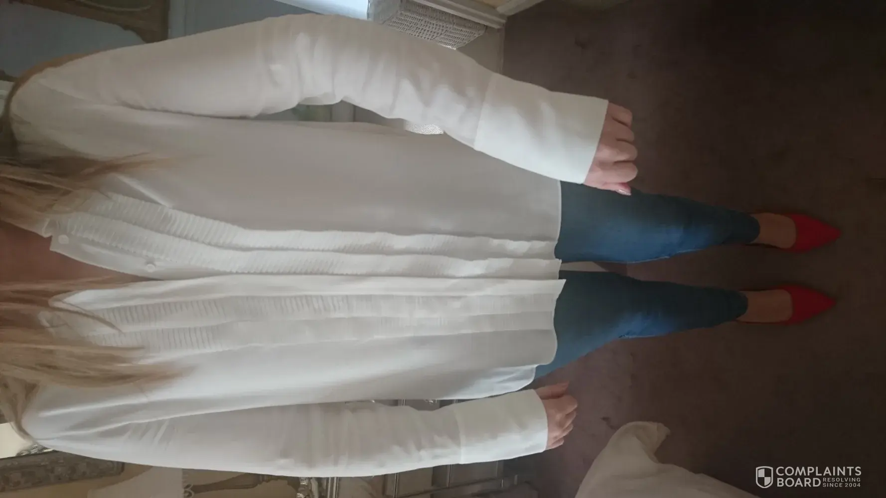 Hello, I bought a white shirt blouse from your london store just before xmas 2018 (8.11.18) and wore it today for the first time (15.2.19) to a special occasion and within ten to fifteen minutes of wearing it before i'd even gone out the sleeves and underarm have creased up badly making it looked used and like a cheap looking blouse and yet the price paid was £59. 95! I attach a copy of the receipt and several photos of the creased shirt and ask for a response as I am very dissatisfied with the poor quality. I bought it as a staple wardrobe item as a smart shirt/blouse.