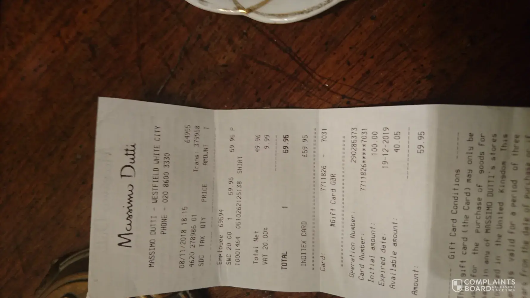 Massimo Dutti credit complaint