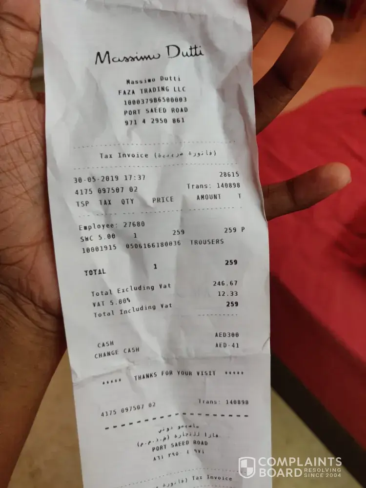 Massimo Dutti complaint from egypt