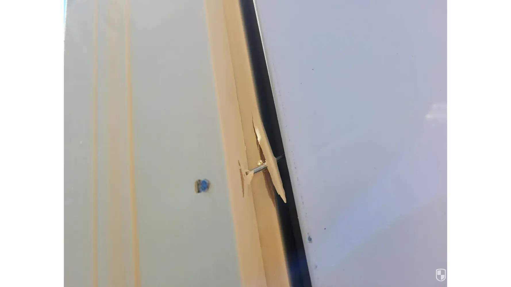 Lastly, many of the holes drilled for the screws on the frame of the windows are drilled in a manner that does not allow the plugs to obscure the holes. It appears that the bits used to drill the holes wore in the trim on an angle that was not intended.