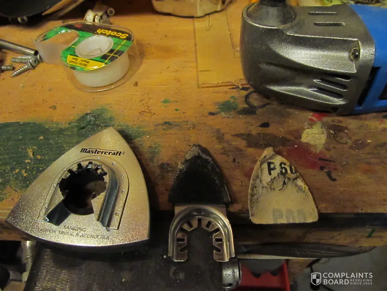 Given a Mastercraft Multicrafter sanding tool for Christmas. When I first used it, the small sanding head (Velcro attachment) melted the Velcro and now sanding pads will not stay on the attachment - attachment useless. Next I moved to the large version of the same attachment and was very careful to work slowly and avoid excessive pressure, stopping frequently to avoid overheating. The attachment started rattling and I found that the mounted plate had torn apart - another attachment useless. Now, I cannot use any attachments as the mounting screw will not stay tight, a minute of use and the screw is loose and the attachment starts rattling around. I cannot tighten it any more with the provided Allen wrench and if I move up to one of my full size wrenches the screw will no doubt strip or break. As a result the whole tool is now useless ! Fortunate that it was a gift and I am not out of pocket for the cost of the tool, but the inferior quality is beyond belief. Sent a complaint off to Mastercraft but have received no reply yet.