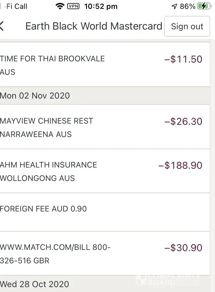 Match.com I’m complaining about charges being taken out of card