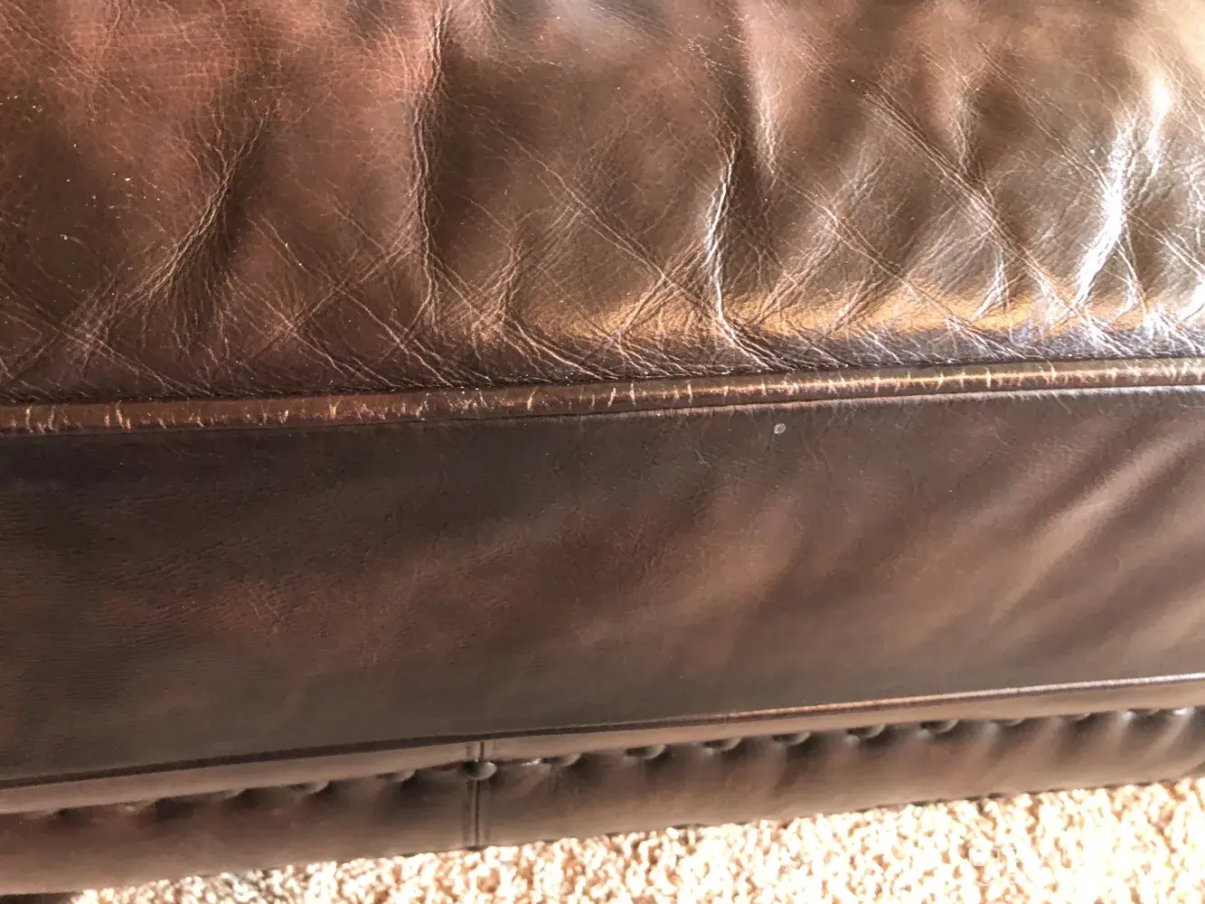 The leather sectional we had replaced once due to peeling is having the exact issues but WORSE. We work 40+ hours a week busy on weekends, Of a family of 3. So the usage has been below average. But anyway you sit in the couch it is peeling. We thought it was a defect in that one couch. However, it seems it is the type of leather sectional, this sofa sold thru Mathis Brothers. I went with this couch due to the name, Bernhardt. I want to think you make better sofas then this. The peeling is HORRIBLE. And yes I have the insurance and there is a loop hole why it isn't or can't be fixed. They say it doesn't cover the issues with the couch. What are you going to do about a year and half old couch that has these issues? Im coming to you because your product is defective not ONCE BUT TWICE NOW. Make this right. Call me at [protected] or [protected]. I can provide pictures.