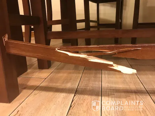 We purchased our dining room set on 11/4/17. As we approach our 1 year warranty, I would like to resolve this issue as soon as possible. A few days ago sitting on the tall bench model # WIN - DFDT45524 the piece of long wood at the bottom that one would be used to rest feet suddenly broke! Jenneth Garcia at customer service in Ontario CA where it was purchased told me, " that piece of wood is part of the frame not intended for feet." I would strongly disagree since it is a countertop dining set. Not intended for our legs to dangle. She had requested pictures of the broken furniture and would review our claim. Pictures were sent to her via email. Today she called and concluded that the damage to the bench was deemed customer responsibility and would not be covered under the warranty. She also stated our furniture protection plan we additionally purchased would neither cover the damage. I re- read the back of my receipt under warranties and it explains in shop repairs will be made for materials or workmanship defected. Or not covered due to customer abuse or neglect. Apparently customer service blamed us for the damaged bench. It is a big assumption on their part without proof to assume we intentionally broke the wood! We have been long time returning customers to Mathis Brothers and has always been our first choice to buy furniture. We have always been treated kindly by your sales people. And we would like to continue to bring our business for years to come. But understand in all fairness, for a dining room set that is not even a year old yet. The " foot rest" breaking does show poor workmanship.