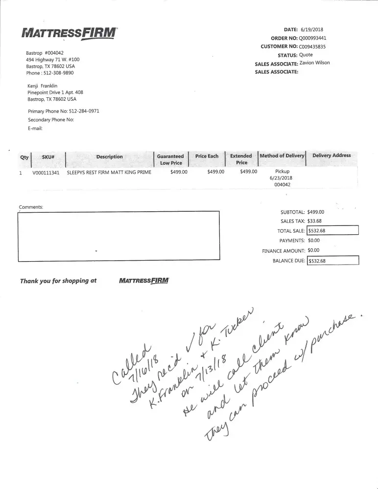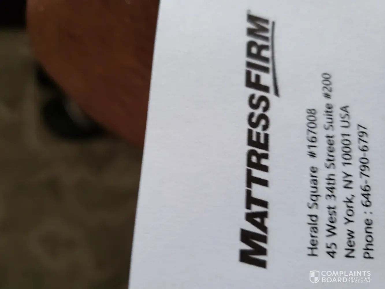 Email to Mattress Firm is below. (easier than typing out all the facts)