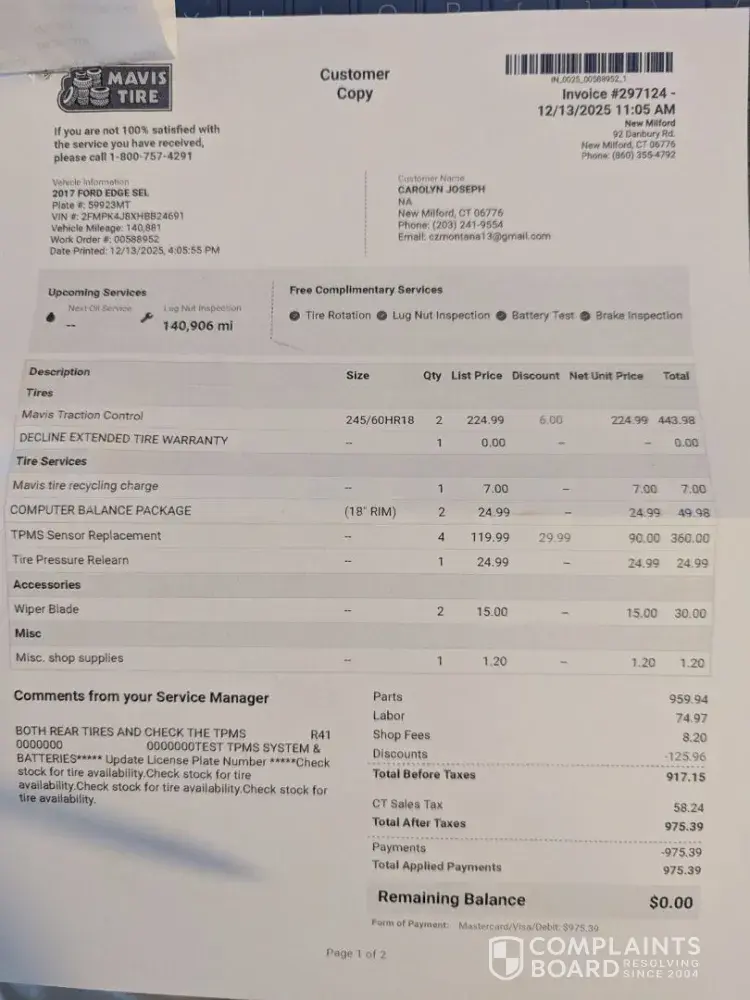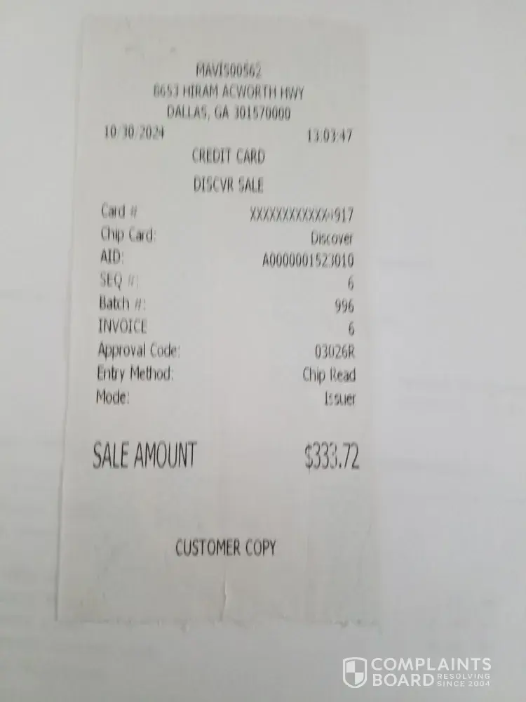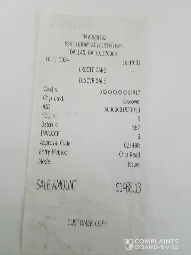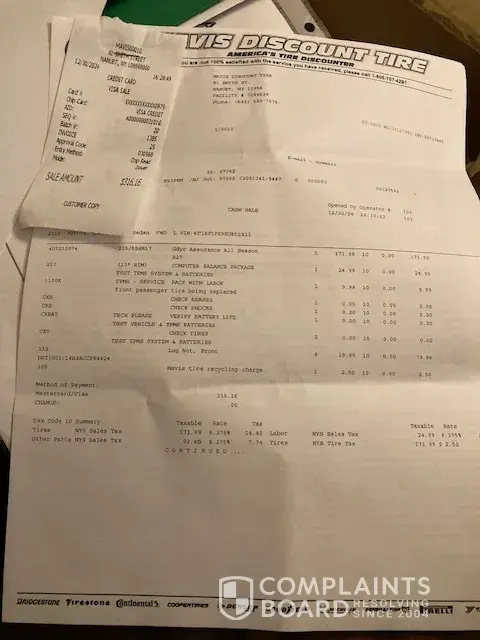 Read full complaintMavis Discount Tire complaints: history and resolution overview