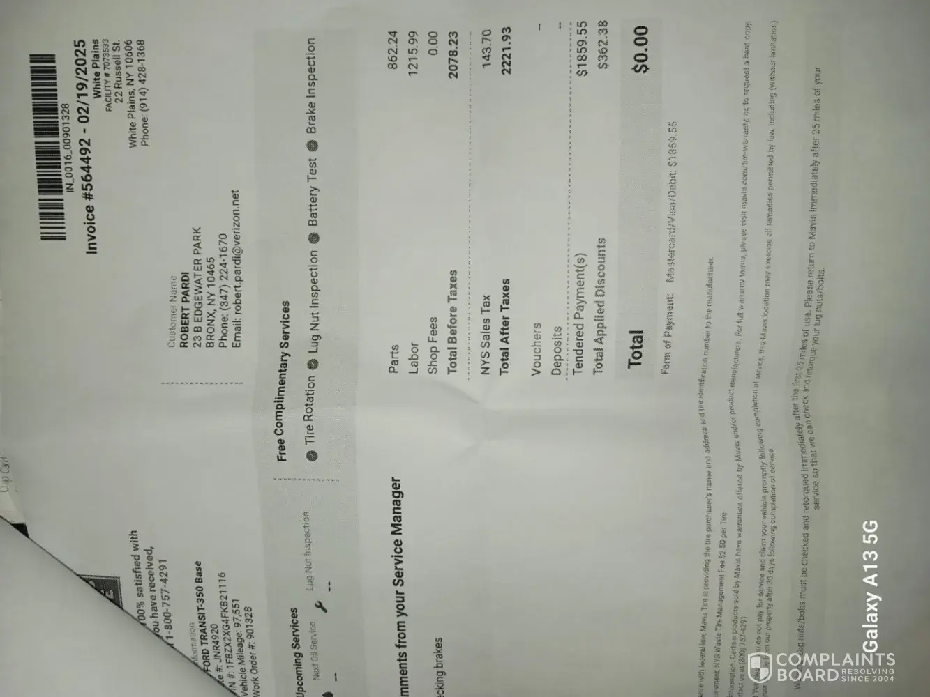 I brought my van to have the front & back brakes and rotors replaced at: Mavis Discount Tire - # 16 22 Russell St. White Plains NY, 10606 [protected] on February 19, 2025, I was charged $1859.55. When I had the same work done on Sept 1, 2020, I was only charged $741.26. I spoke with the manager Ricardo yesterday. And he claims due to inflation that's why I...