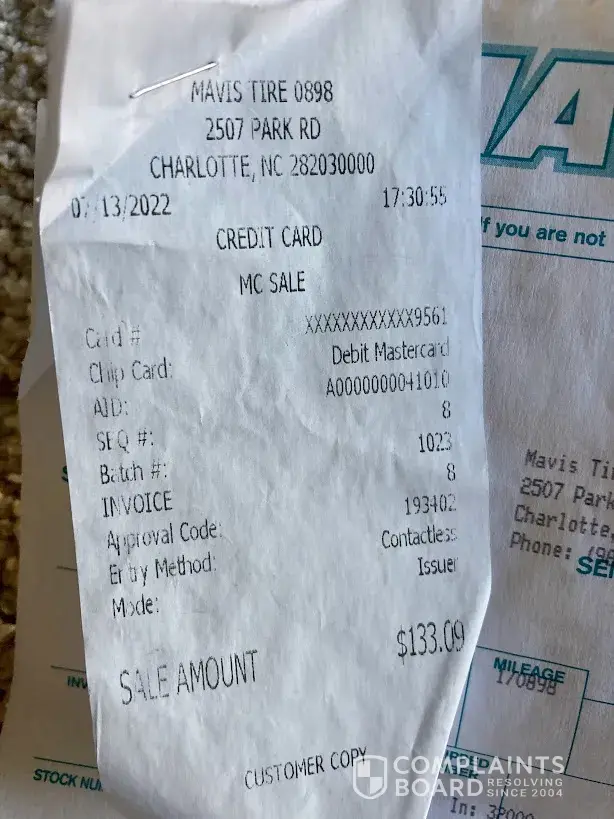 Desired outcome: nothing was done sent this to Mavis corporate complaint dept Oct ^would like a refund