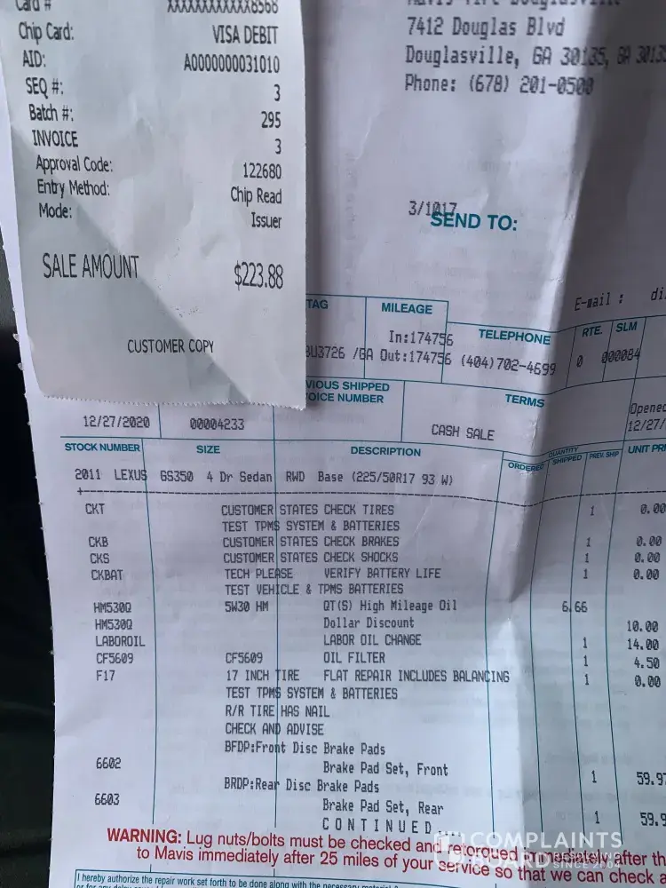 As of this moment I am telling people to never, EVER use Mavis as they are a fraudulent company and they might do great harm to your vehicle!