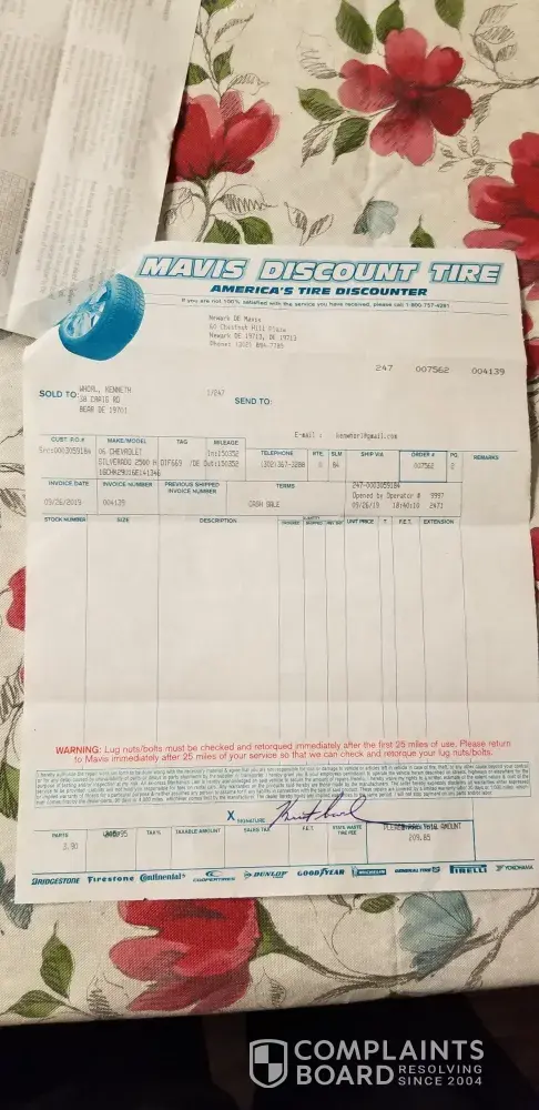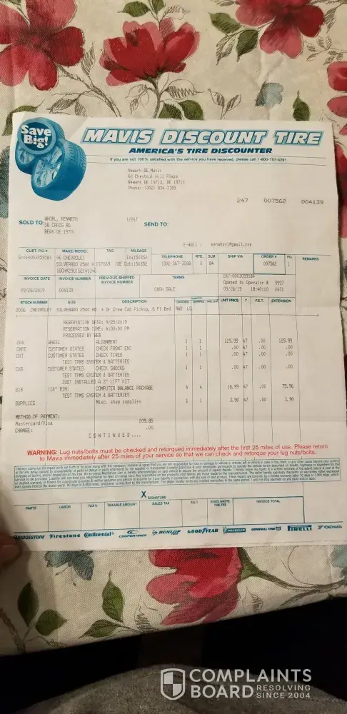 Read full complaintservice and ordering up tires