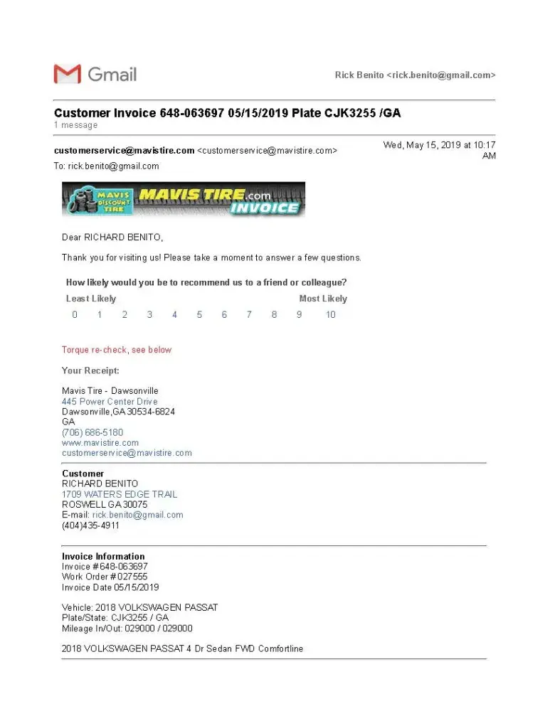 Shame on Mavis Discount Tire. It is 2019 and to charge women more for THE EXACT SAME THING is discrimination. Attached are 2 invoice for the exact same thing. The only difference is 1 was take in by my boyfriend and the other by me. i think it is shamefule that you would charge me more. Had my boyfriend not taken in my car for the exact same thing I would have never known.