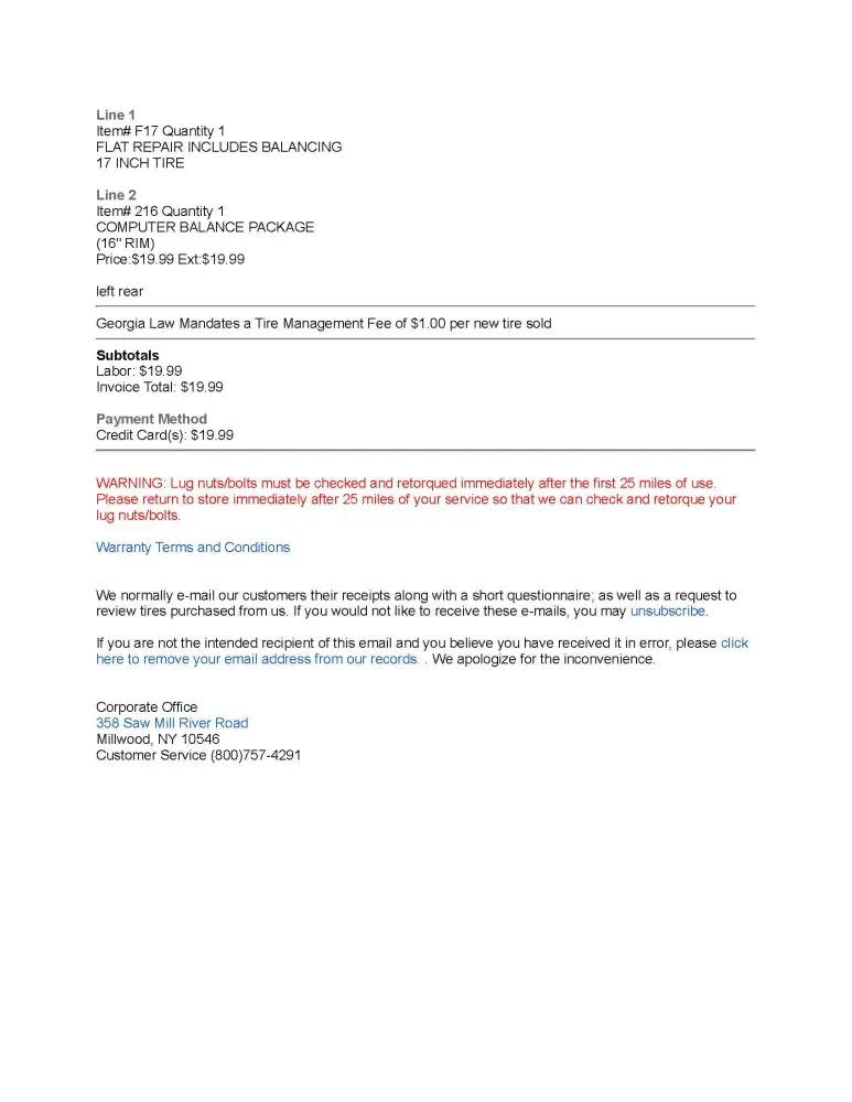 Was saddened to see Kauffman Tire sell out to Mavis in the Atlanta area in the past year. Was never a "raving" fan of Kauffman yet they provided fair prices and very good customer service. Can't speak of Mavis' prices because I haven't and don't plan to spend any money with them but their customer service leaves a lot to be desired. Recently picked up a nail and went to local Mavis store to have it repaired. The desk clerk said it would be $20., even though I bought the tires there. Additional cost road hazard or not Kauffman never charged for the occasional nail repair, because its called CUSTOMER SERVICE folks! For that $20. Mavis made on that one repair, they now have literally lost thousands of dollars of my business between tires for my four vehicles, oil changes, alignments and the occasional minor repair.