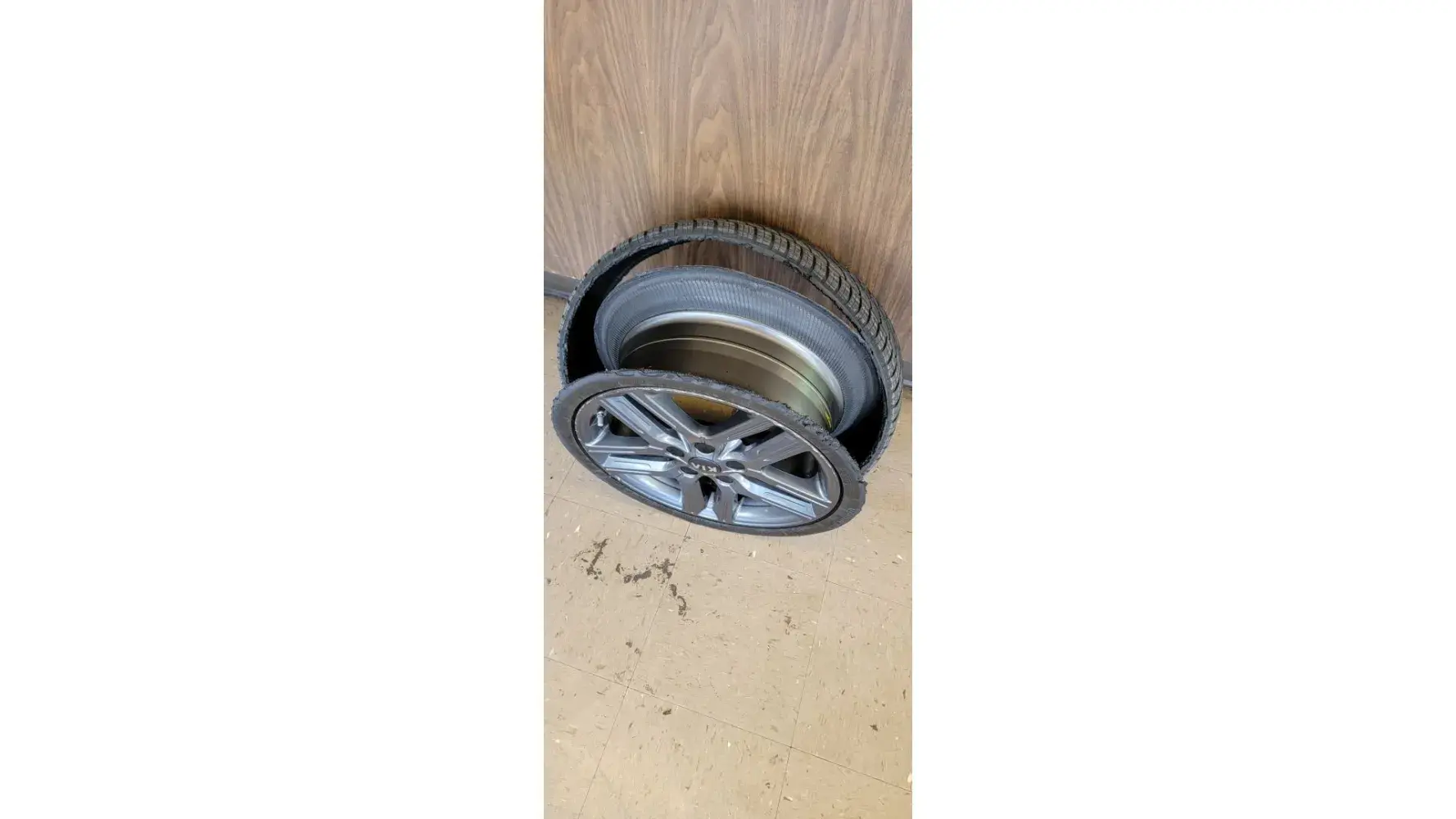 In May 2023, I took my vehicle to a dealership for service, and they noticed two of the tires were flipped; the inside of the tire was on the outside. This was news to me. Due to time constraints, the dealership could not/would not fix the problem.