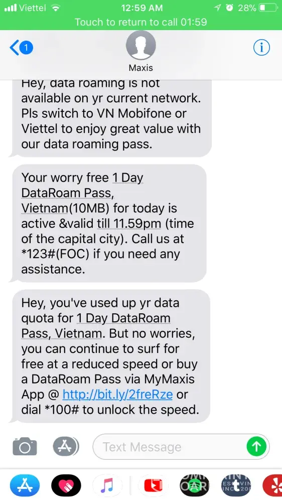 Ok it's my fault, but I do hope that Maxis can just take away Vietnam as one the countries that they provide roaming service as there's no point providing 10MB per day and claim that you have international roaming, what's more at this price! 10MB is ridiculous and serves no purpose - for downloading a few whatsapp images and that's it? I seriously think that it's unfair, better just claim that Maxis has no international roaming service in Vietnam, save everyone's money and effort.