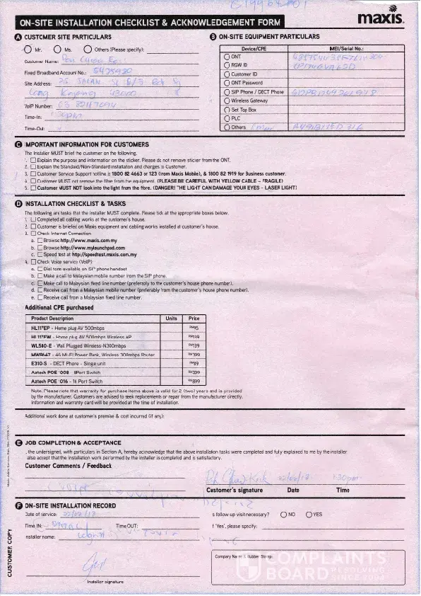 24Feb18(Sat) Called Customer Service to inform there appear to be a mis communication with technician as I have returned the modem as requested by TM to complete the cancellation. I was very pleased when she informed me Maxis will arrange Technician to provide me a replacement modem