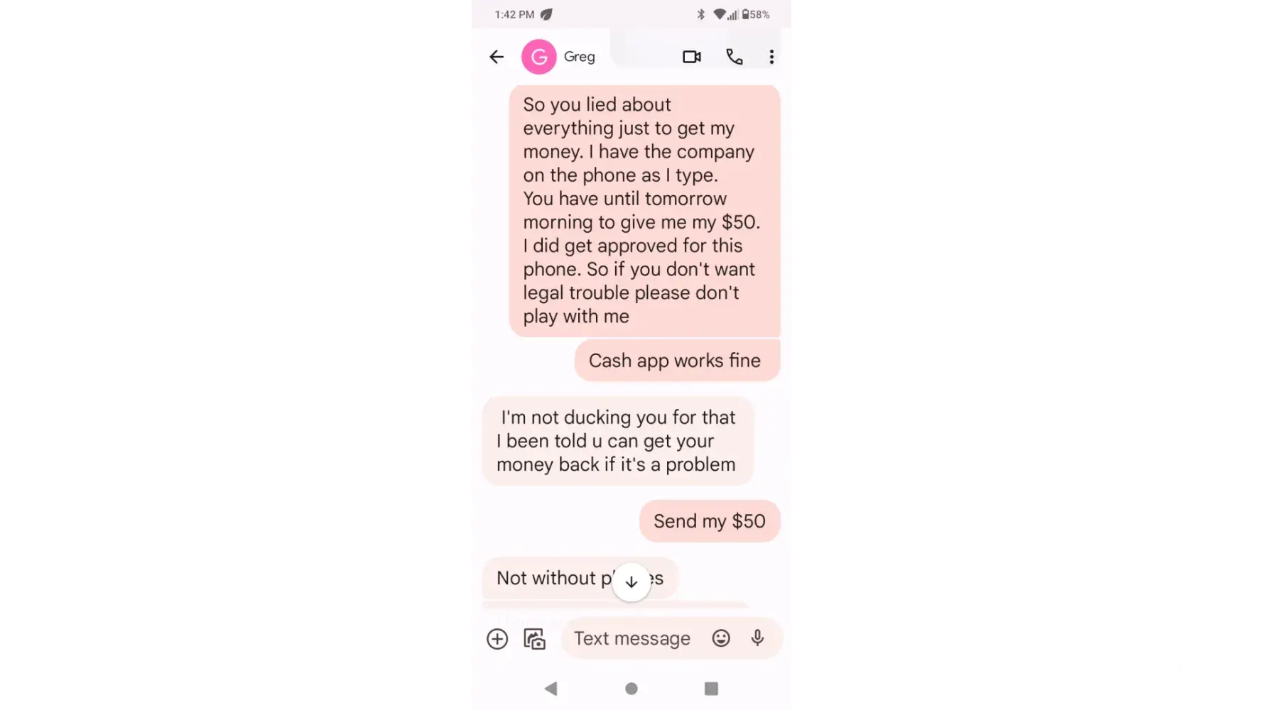 Claimed loss: $50 and stress