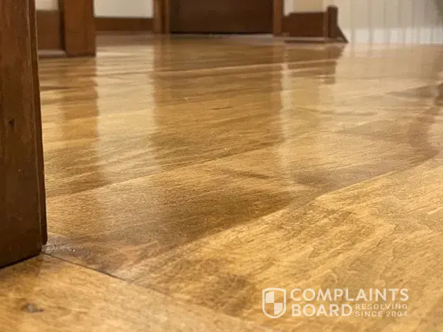 Desired outcome: Repair or replacement of wood floor damaged by water