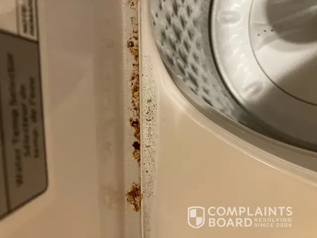 We own a washer Mod mvwc565fw1 serial c82841329 about 2.5 years young. The unit works fine but the washer door and bleach filler area is rusting terribly. The door and bleach area looks like washer from 30 years ago. Being 69 years old we have has many washers and dryers including Maytag. At their end of life, the porcelain cabinets were in perfect condition. This unit is rusting like a tin can and looks like a very cheap washer which it was not. I wanted to add the pictures as proof. You decide what the correct response should be and let us know.. thanks.
