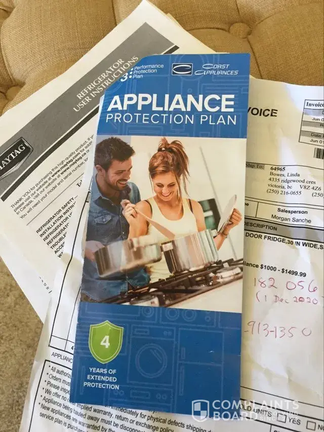She indicated that she couldn't see the image directly but gave me a email address and they would attach it to my file. letter attached. She also suggested that I might have better off if I had purchased a Maytag protection plan instead of the Coast appliances one but didn't definitely know if it would have covered the part that was defective.