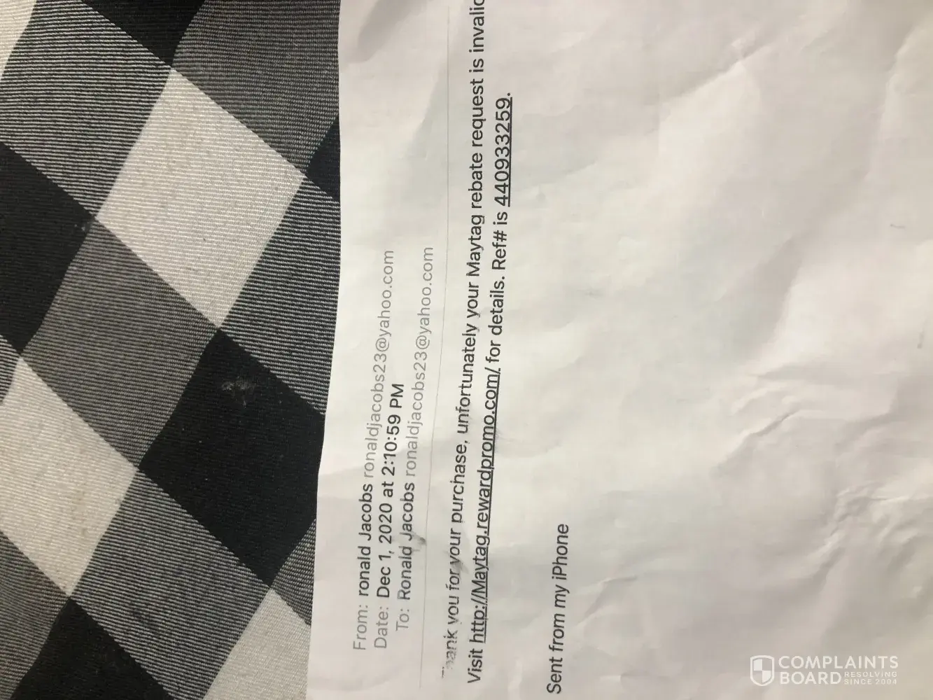I am complaining about no reply for my email