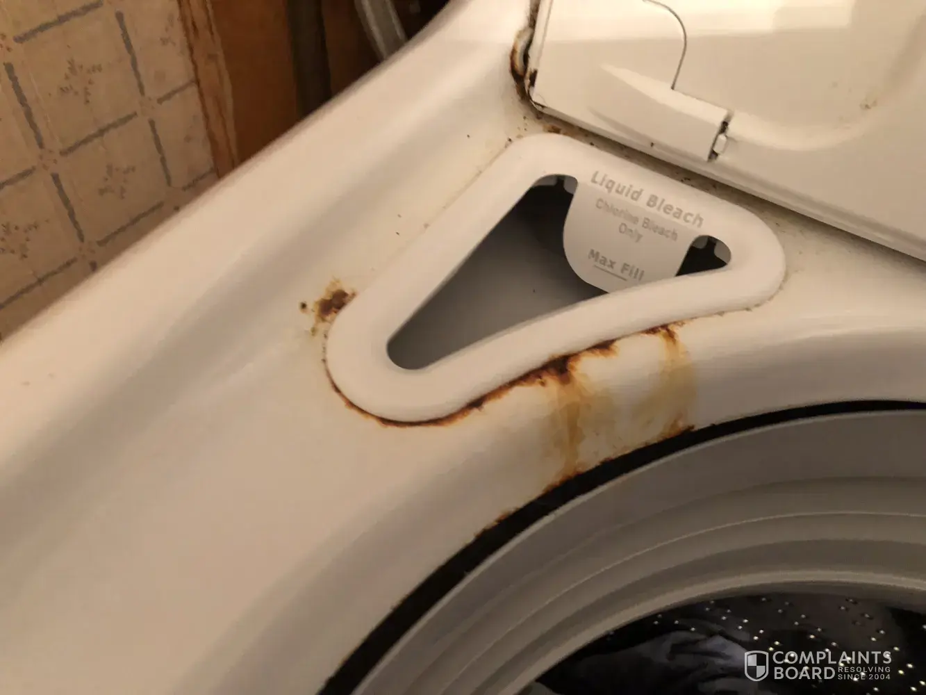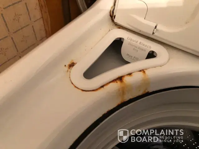 Purchased all 3 Maytag appliances, 5 years ago, Maytag microwave was services 5 times first 6 months of ownership, in addition the Maytag refrigerator freezer, ice machine, hasn't worked in 2 years, the maytag washer constantly goes out of balance, as you can see from the pictures attached is rusting in the bleach section, what a bunch of crap,