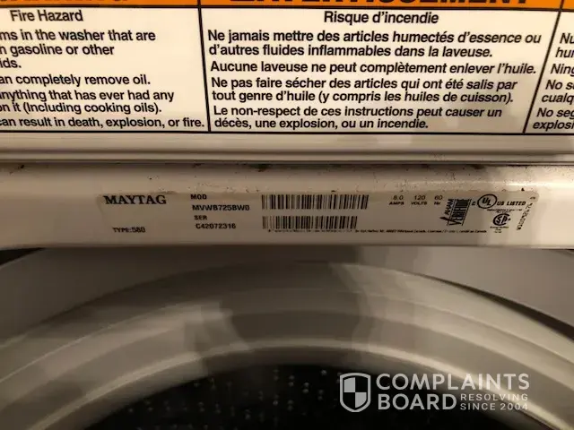 Maytag has left an official reply on this complaint.