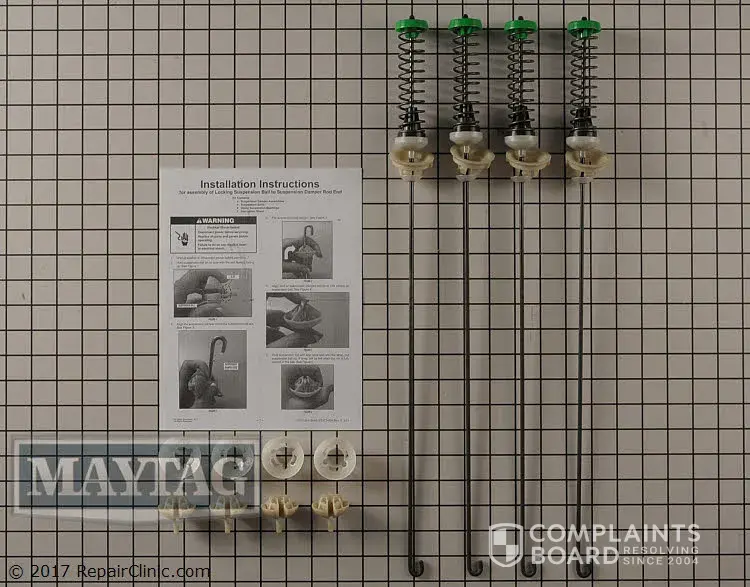 I have been working on this problem for 4 days and we have been without a washer for 2 weeks now. We own a Maytag Washer, Dryer and Dishwasher and I have bought Maytag's our entire 20+ year marriage. The washer in question is an 18 month old Top Loader. The Suspension rods holding the drum needed replacing. Picture is attached from the Maytag parts site.