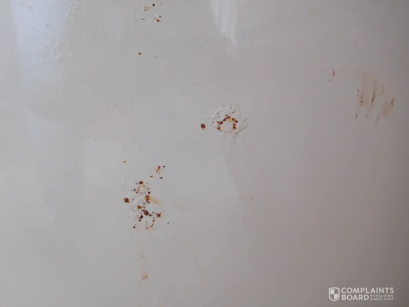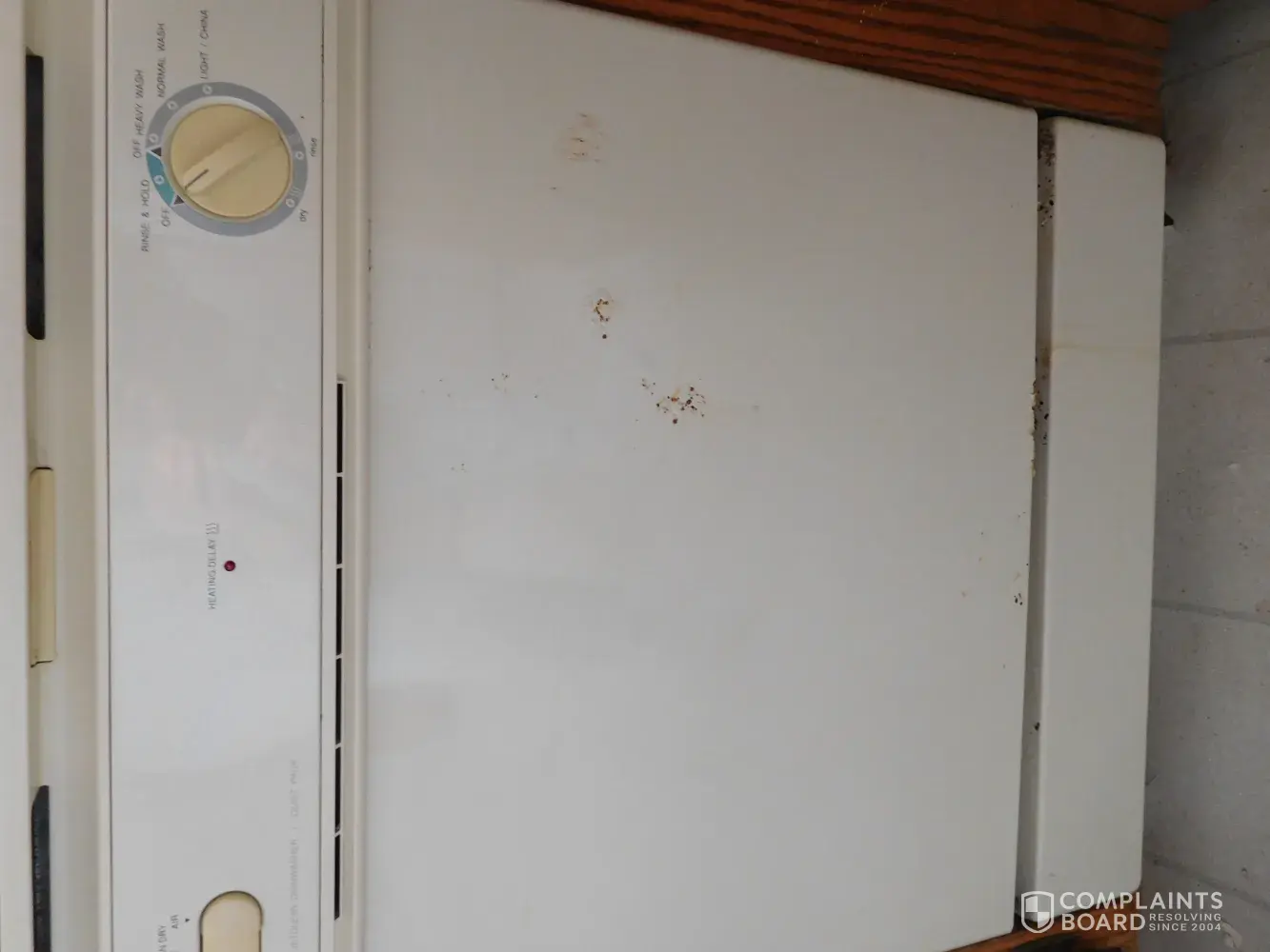 I have a Maytag dishwasher model number dwu7502aam serial number 10856267QD. I have been happy with its performance until now, the outer door is getting rust spots coming thur the door. I would assume that something like this was designed to resist water wear and rusting. Is there any thing you can suggest or do? I called my appliance repair and they said the door was warped and my plan would not cover it. How can something designed to use so much water rust out? Please advise.