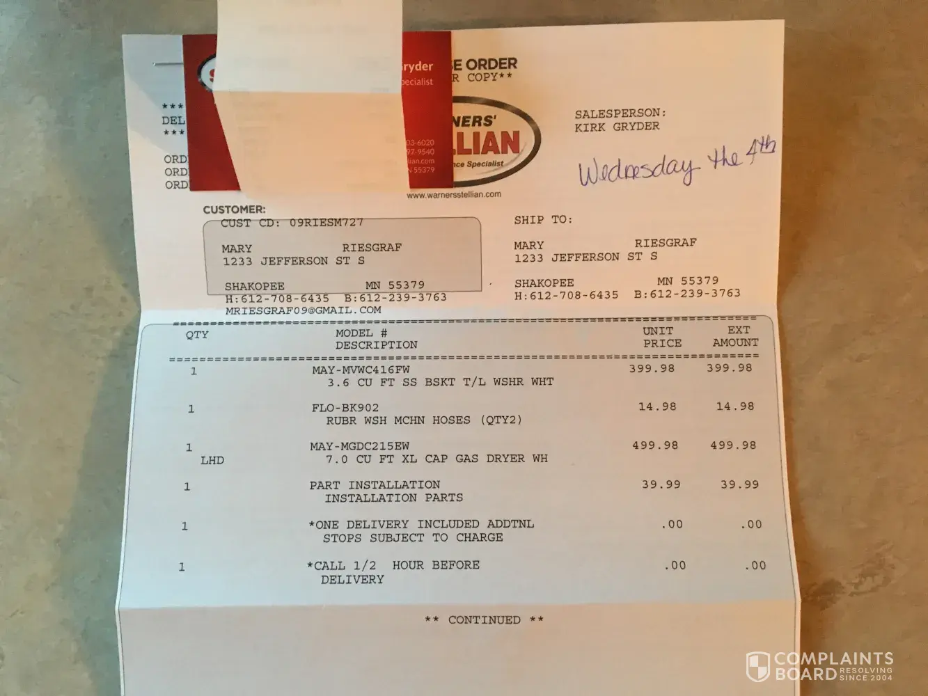 Verified customer This complaint was posted by a verified customer. Learn more