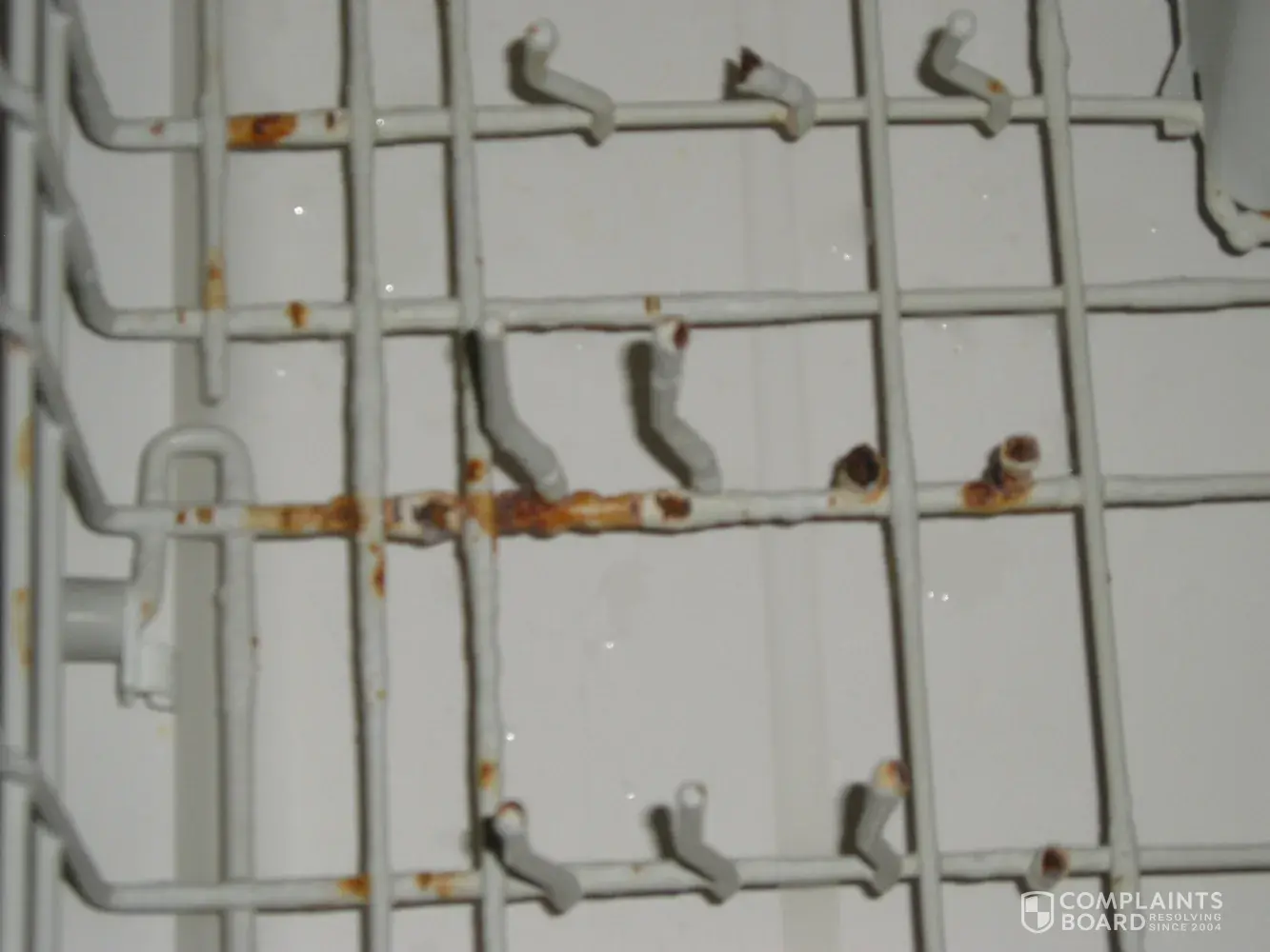 Attached are a few photos of what you can expect from your Maytag dishwasher racks after using it only a few times a week. The upper and lower dish racks are rusty and falling to pieces. Best to stick to another brand that will stay together after you wash your dishes a few times.