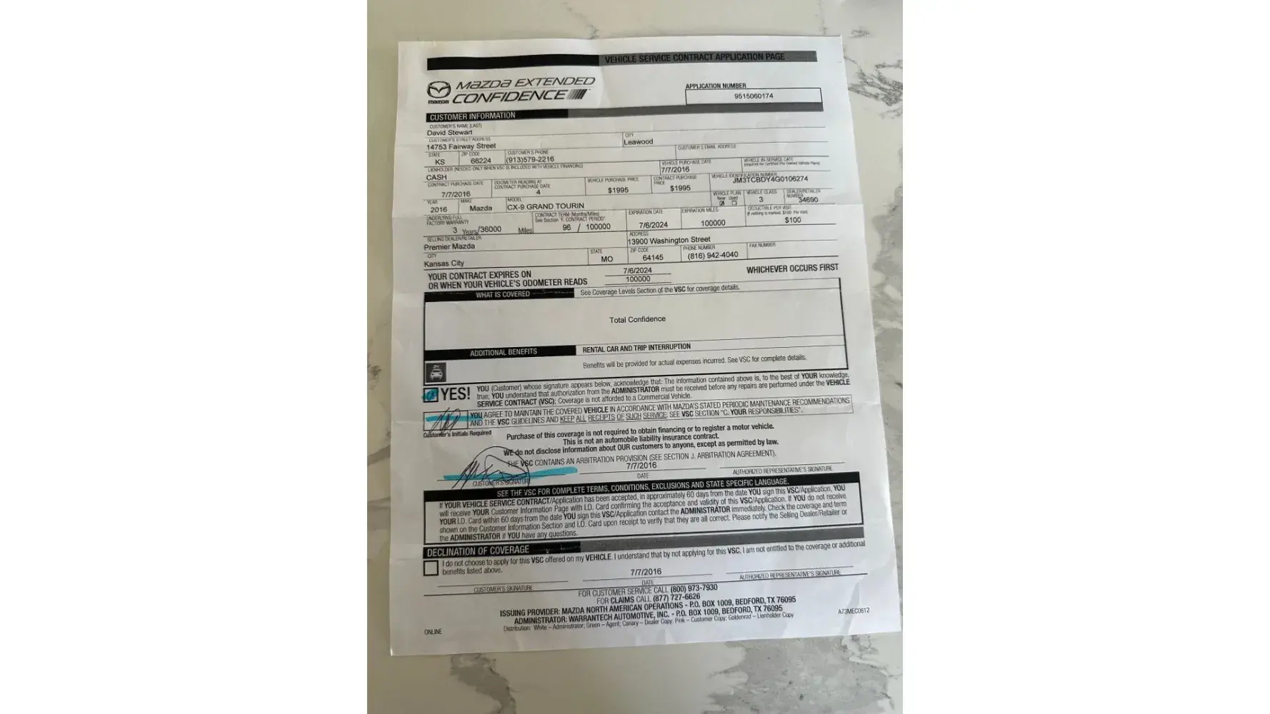 So Bryant Rittmiller (the service manager at Luther Mazda) is telling me that they didn't perform the engine replacement; that they want their loaner car back and that our claim has been denied.