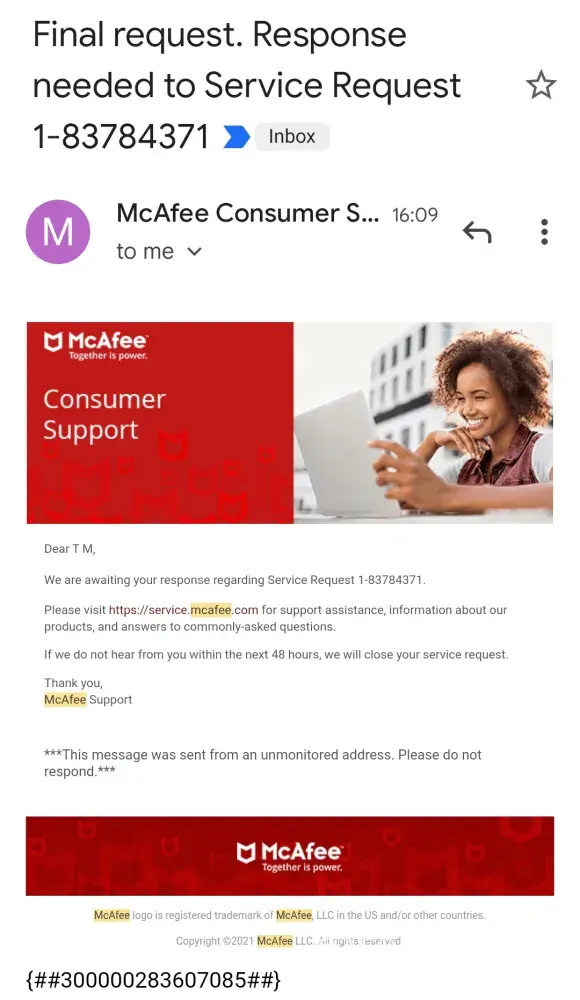 Desired outcome: McAfee REFUND.