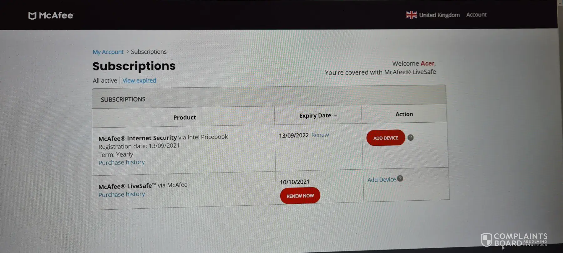 McAfee automatically renewed my subscription using a credit card that it was not authorised to use. To make matters worse they charged £89 for a product that is available for less than £20. I would like to know how McAfee was able to use a credit card that they had no knowledge of (presumably the software accessed details from my PC?) Debit Card was debited 25th of September 2021.