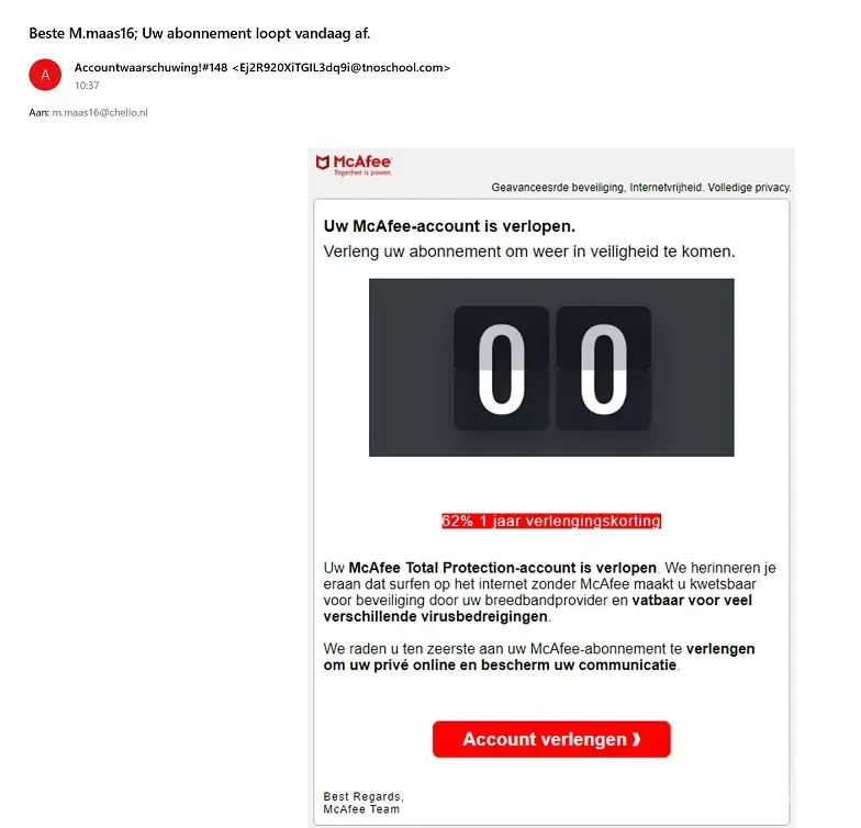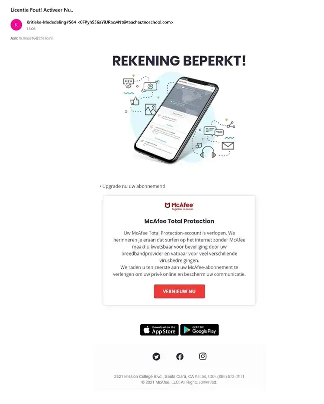 I do not have a subscription to a MCAFEE product and consider this type of email to be very unethical if not criminal.