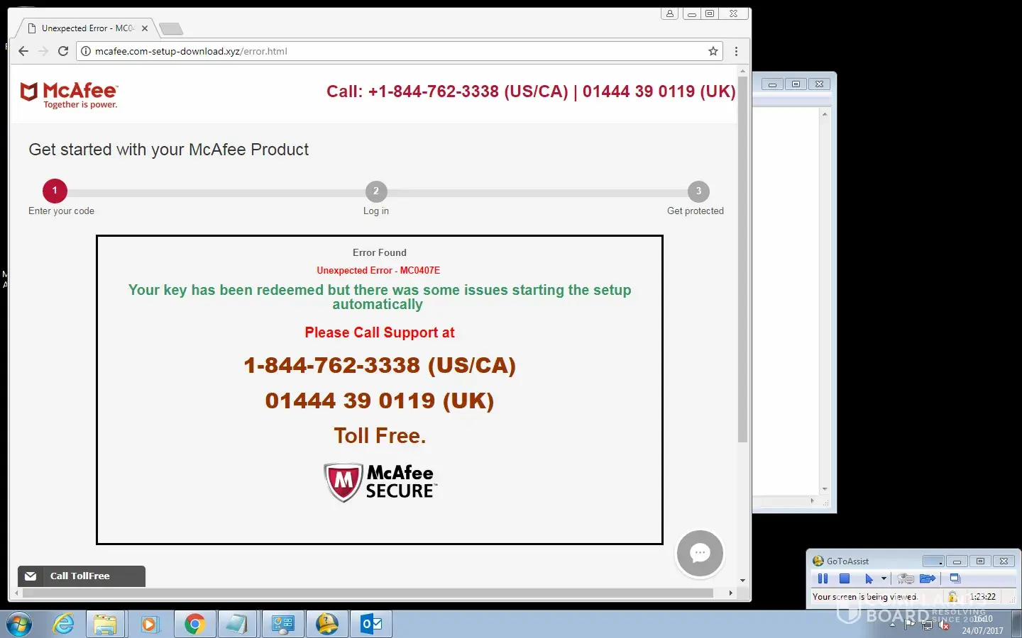 I got a message telling me there was an error and one of Mcafee chat guys said he would get somebody to call me.
