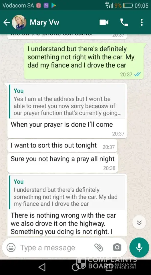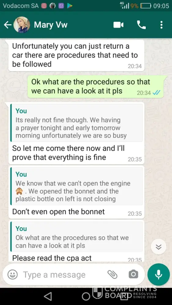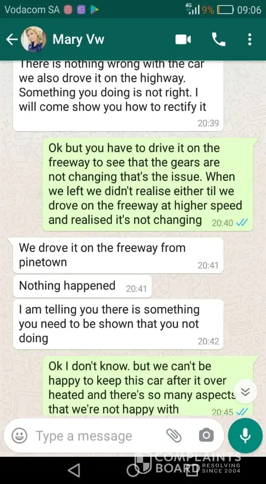 Disappointed at the service received from McCarthy VW Mastercars Gezina. The case is still unresolved!