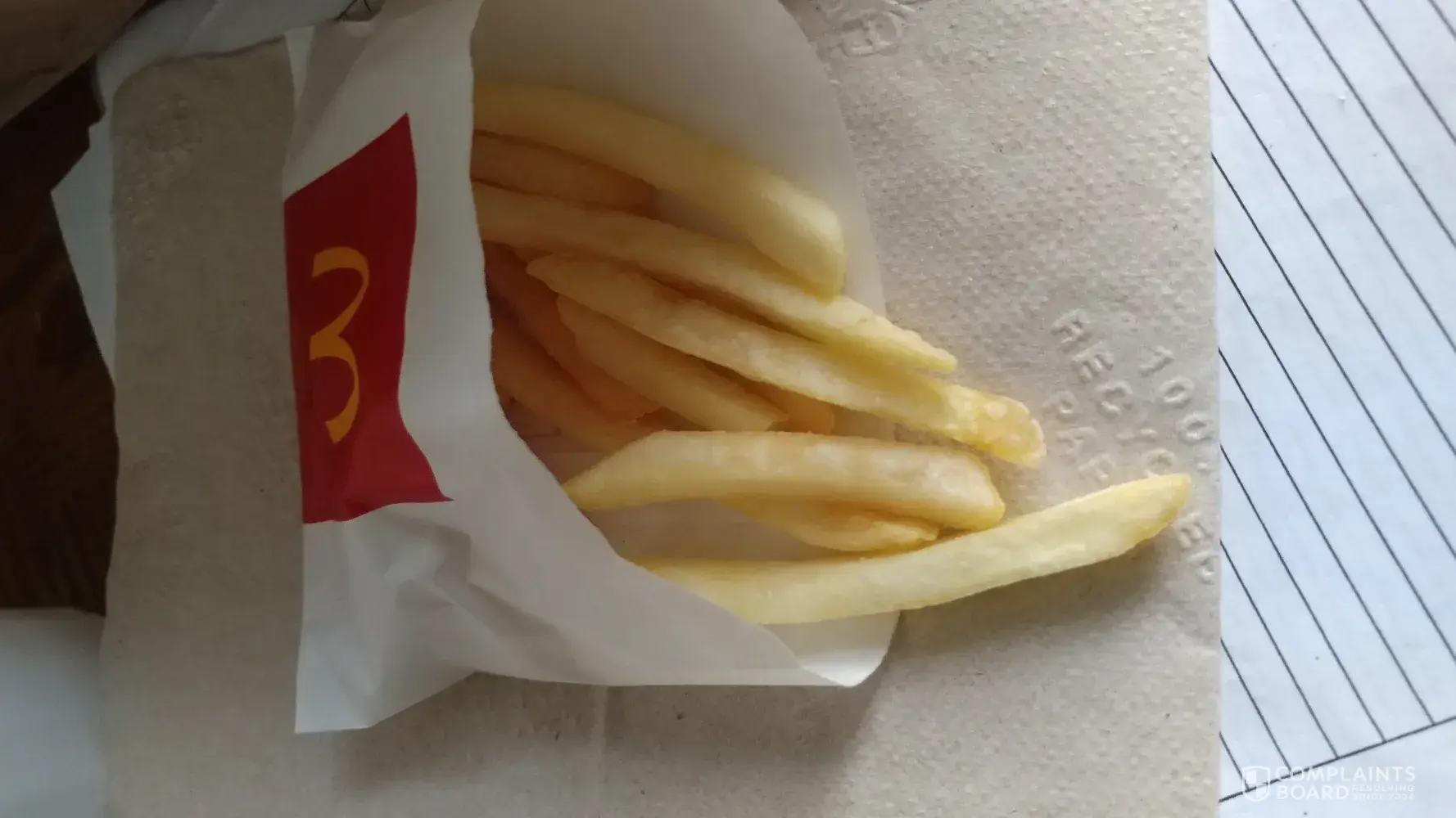 First my double cheese burger was suppose to be a double, I had half pattie and a whole one...the bottom bun was hard...the fries was hard and tasteless...the apple pie was burnt