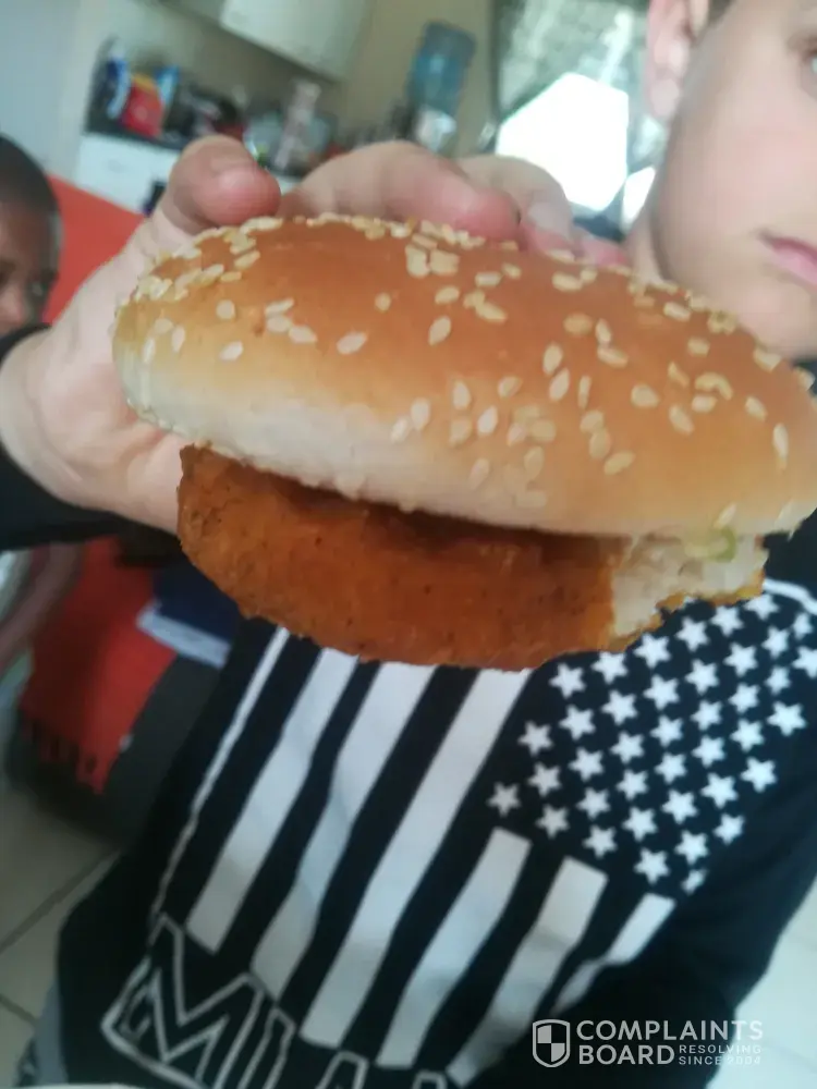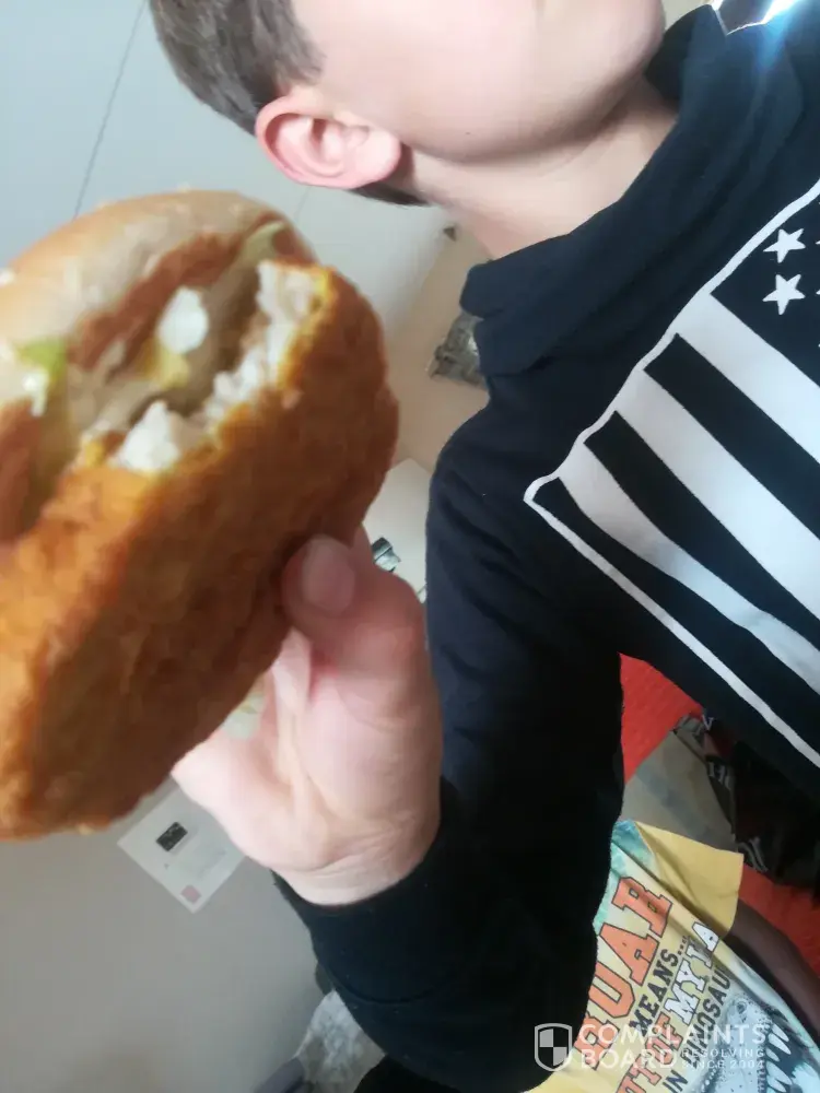 When he opened up the take away box he noticed there was no bottom bun of the burger. We did not go back to Mcdonald's and complain.
