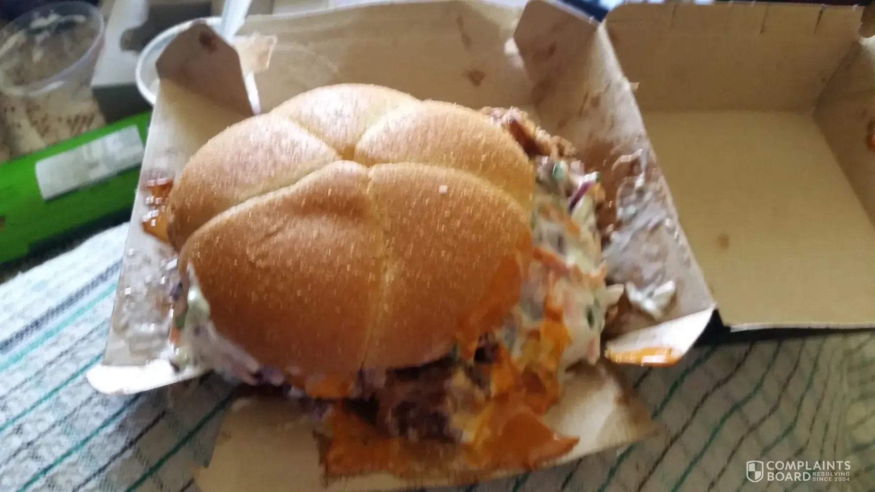 I purchased a Pulled pork burger on Sunday 3rd December 2017 from the Drive-thu. The trip to my home only takes 2 minutes so there is little time for anything to happen to the burger that could be attributed to the drive. When I opened the container I could only see a great mess instead of something I could enjoy eating. I returned the burger to McDonalds where upon speaking to the manager I received a double Angus burger and chips to replace my meal. I feel that the issue was not taken seriously and I very much doubt if any further approach was done to the staff there. To add to my indignation I was requested to wait for 7 minutes for this atrocity to be delivered to me at the parking bay outside the shop. Photo of this mess is attached