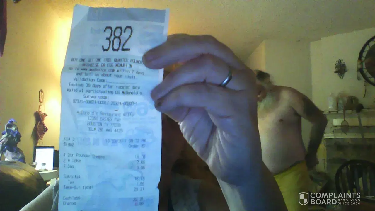 I ordered 4 mcdoubles at the houston eastex freeway & the girl charged me for quarter pounders with cheese. When i go to mcdonalds i only get from the $ menu as i lived on a veterans income. the receipt number is customer number 382 on 1/3/2017 ks#3 side2 order 82.