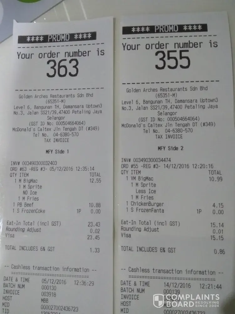 On 17th Dec 2016 (23:15:46), after watching Epl on the tele, we went to get something to eat at Mc D Mutiara Damansara. After a reasonable que, we ordered and our order number was 264. As we waited for our order, the other order numbers were served. Surprisingly they were not in sequence. Giving that reasonable doubt, maybe they were served according to the size of the order, i thought. Then 265 (order after me) was called. It was a take away order and a quite big order for 2 persons. Maybe their food was readily available, my reasoning tried to be positive as possible. Then 257 was called, but when the person approached the counter, he declared it was not his. The order was left on the counter without any further action my Mc D staff. As i went to the cashier to get my parking endorsed, i saw that the order left was similar to my order. I clarified with the cashier and he asked me to wait as he attending to a new order. Then only he was able to check and confirmed that that was actually for 264(our order).