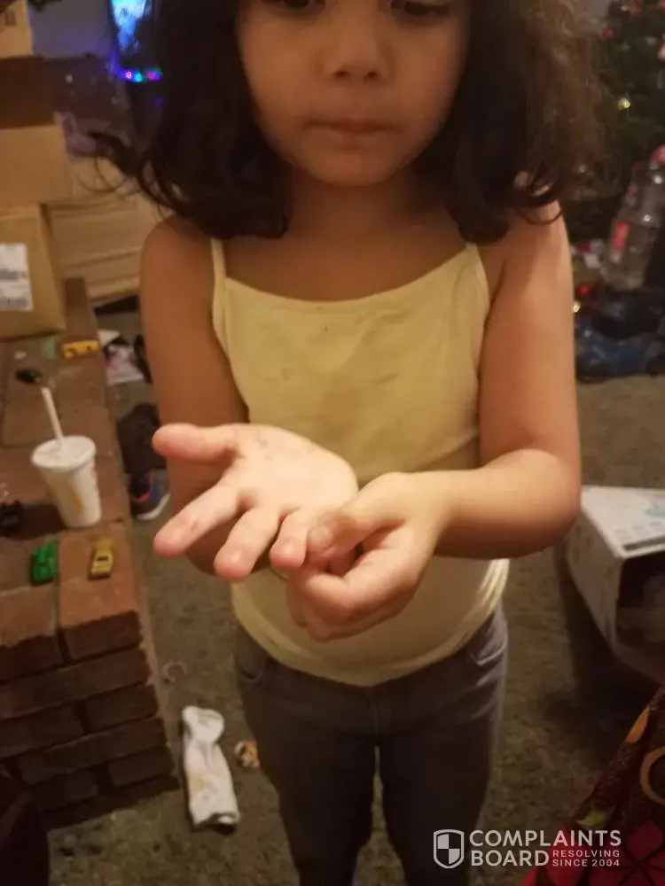 Good Afternoon I recently purchased a happy meal from a McDonalds on adams and Wabash. I purchased a happy meal for my daughter and of course as all kids go right for the toys she screamed and asked what was in the toy. I didn't know so of course I checked and honestly I don't know what's the substance/ particles located inside of the bag that she opened. Its all throughout the bag, my first thought but bugs was honestly I don't know what it is, it just don't belong inside of a kids toy. She was terrified and screamed not knowing what it was I took pictures and plan on returning it to the same location.